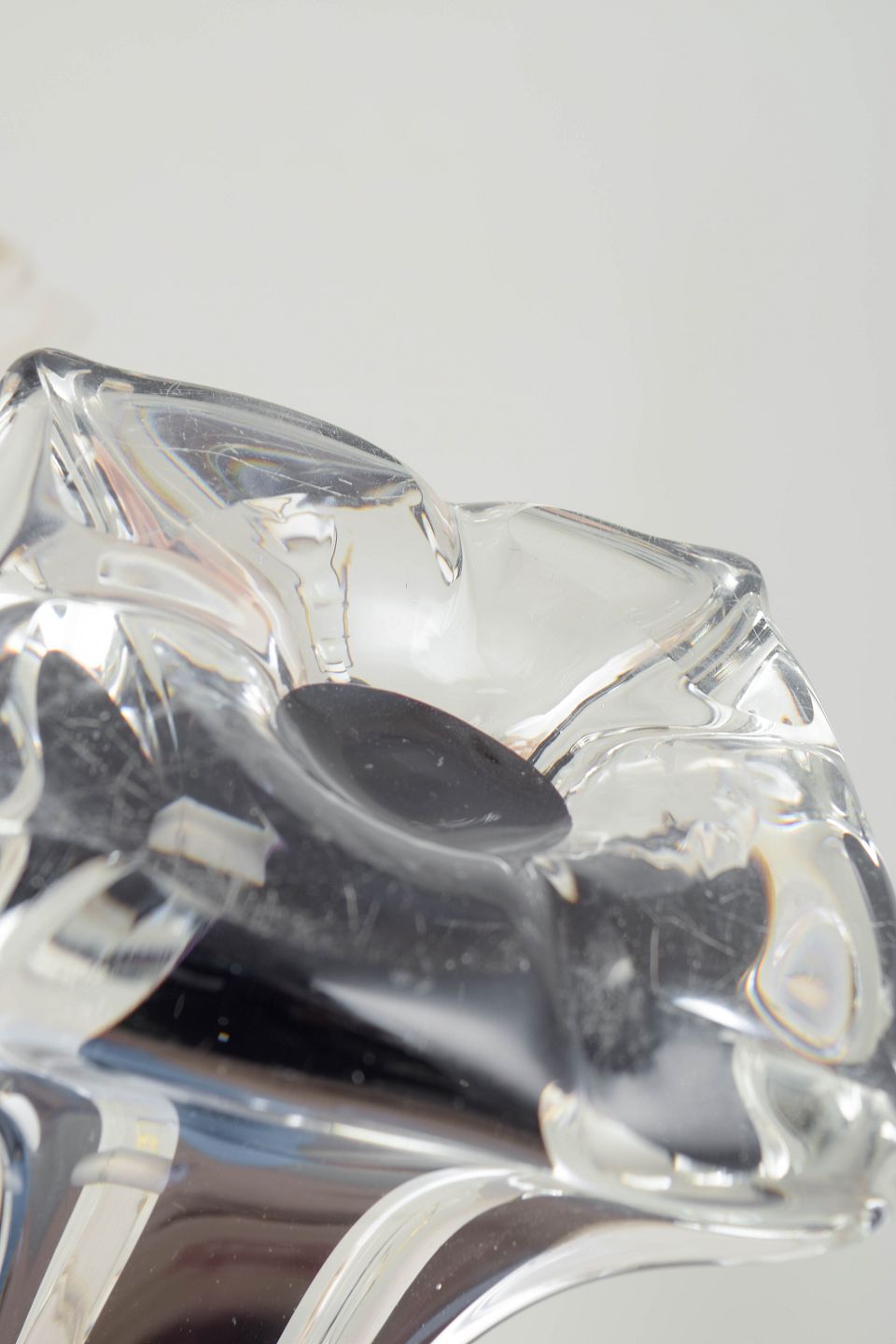 Svensk kunstglas fra 1970’erne kombinerer ofte markante farver med skulpturelle former og præcise slibninger, hvor kontrasten mellem farvet glas og klart glas giver dybde og lysvirkning. Flygfors er kendt for elegante, moderne belysnings- og glasobjekter, og Paul Kedelv forbindes med stramme, tidstypiske silhuetter, der fungerer både som brugsting og dekorative designobjekter.