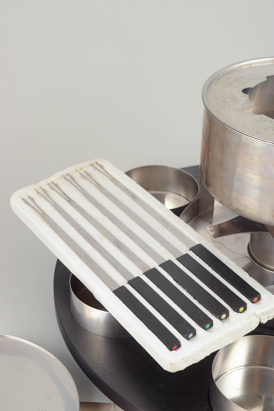 Dansk design fra 1970’erne og 80’erne var præget af en kombination af funktionalitet og et klart geometrisk formsprog. Steltons fonduesæt blev udviklet til moderne borddækning og sociale måltider, hvor materialer som rustfrit stål og træ gav et tidløst og arkitektonisk udtryk, der fortsat er eftertragtet i dag.
