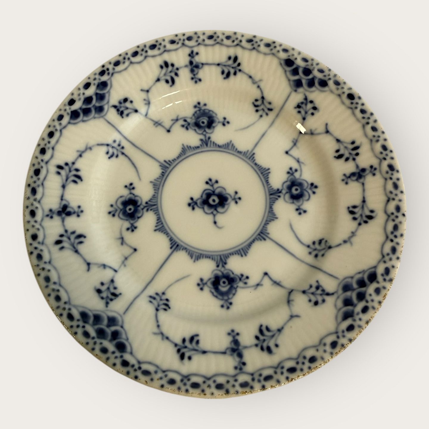 Royal Copenhagen, musselmalet / blau geriffelt, Halbspitze, Kuchenplatte Nr. 1/575, 16 cm Durchmesser, 3. Wahl / Mitarbeiterqualität *Einige schwarze Punkte unter der Glasur am Rand, ansonsten in gutem Zustand*