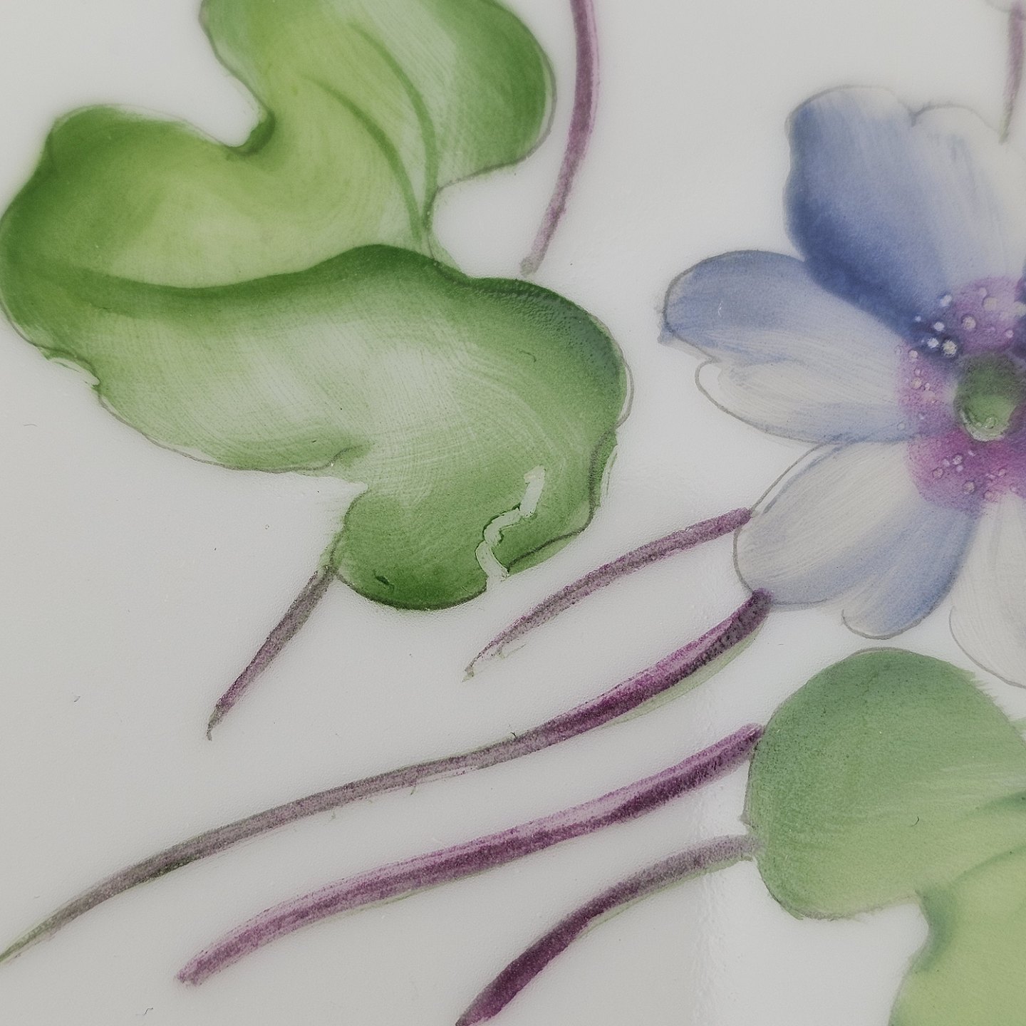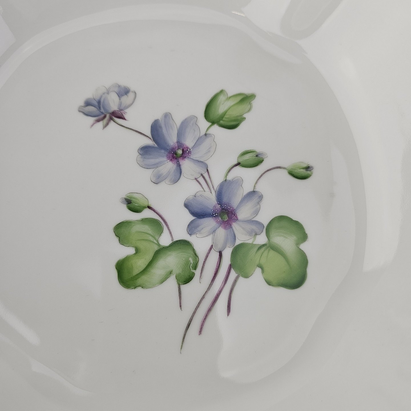 Antonius er af hvidt porcelæn med skælform dekoreret med håndmalede blå anemoner og guldkant. Også kendt under navnet Blå Anemone.