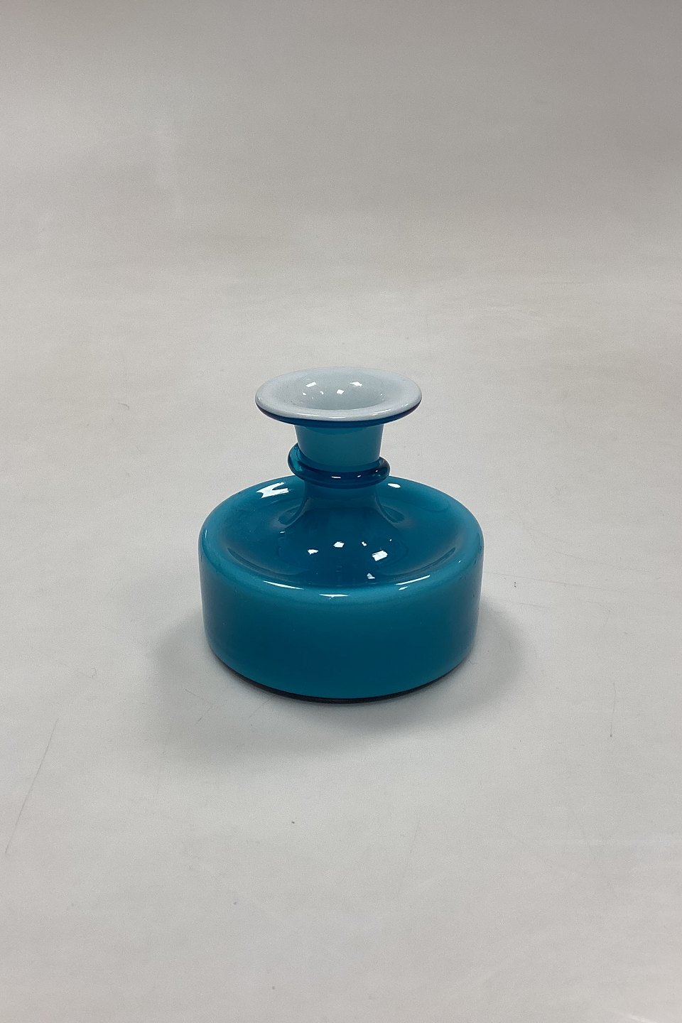 Holmegaard Palet Glaslysestage. Designet af Michael Bang. Farve: Turkisblå og hvid indvendig. Brugsspor i bunden og lille boble på kanten, se foto.