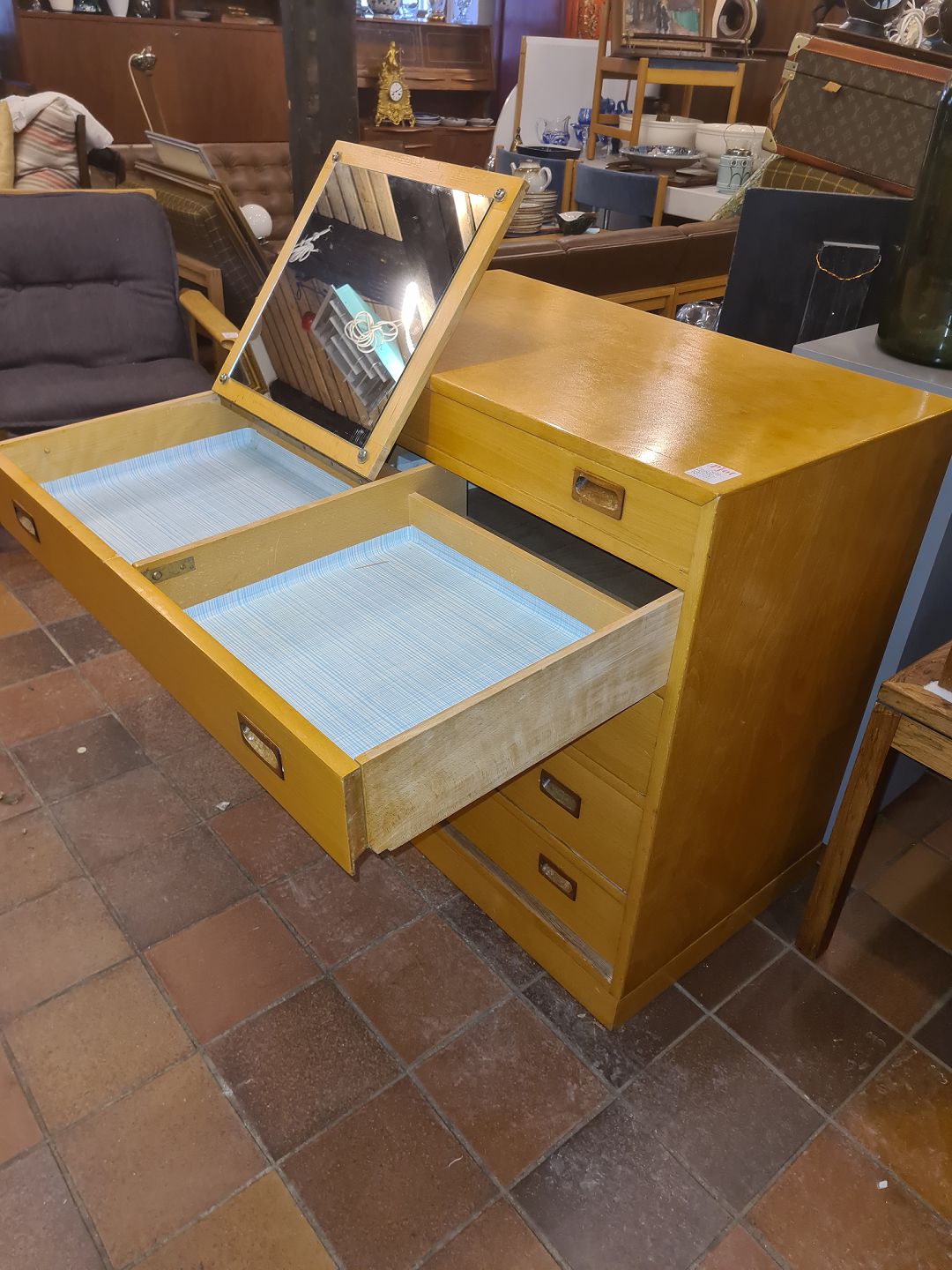 Text zugänglich auf Dänische: Børge Mogensen kommode m. sminkespejl.