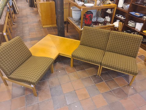 Text zugänglich auf Dänische: Ole Gjerløv Knudsen/ Torben Lind sæt af 3 Moduline lounge stole udført i eg og betrukket med uldstof. Fremstillet hos France & Søn ca. 1970'erne.