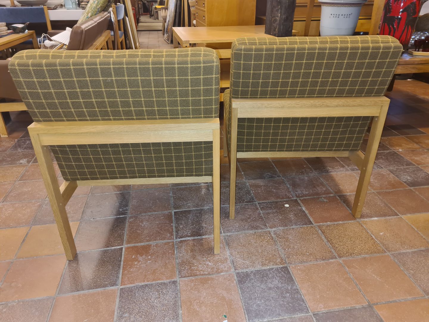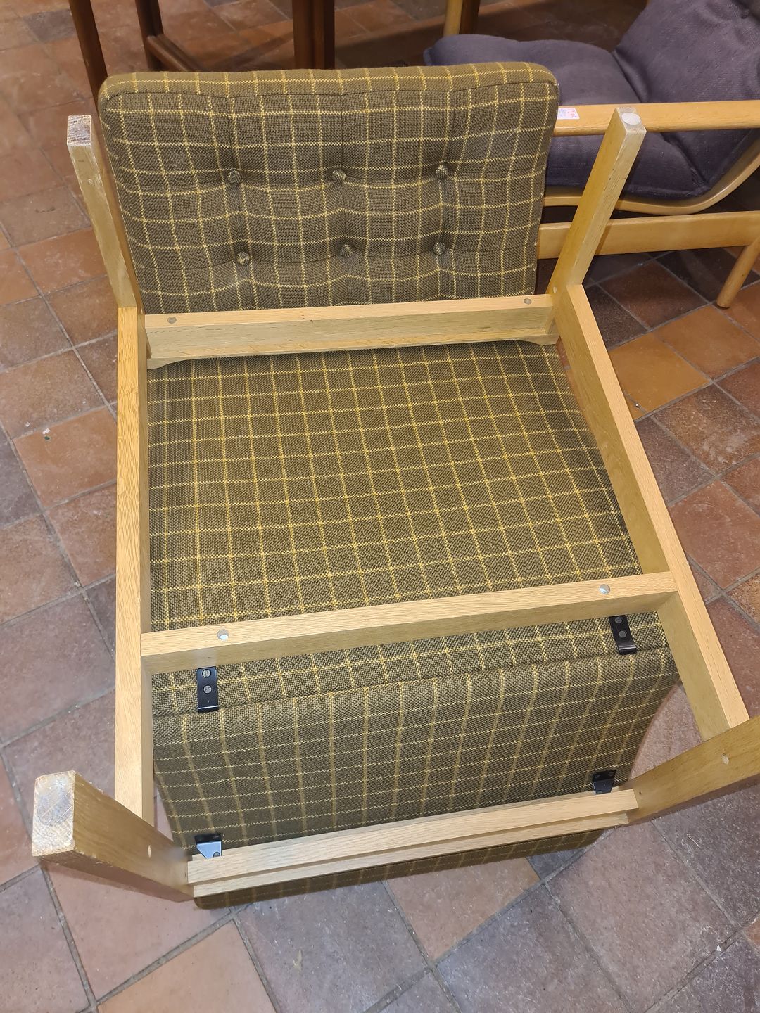 Text zugänglich auf Dänische: Ole Gjerløv Knudsen/ Torben Lind et par Moduline lounge stole udført i eg og betrukket med dybhæftet uldstof. Fremstillet hos France & Søn ca. 1970'erne.