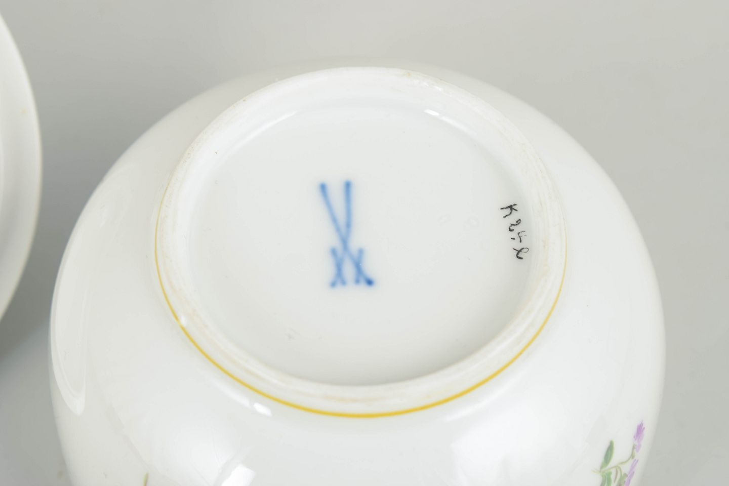 Meissen blev grundlagt i 1710 og er Europas ældste porcelænsmanufaktur. De krydsede sværd, indført i 1720’erne, er blandt verdens mest kendte porcelænsmærker og fungerer som garanti for oprindelse og kvalitet. I det tidlige 20. århundrede producerede Meissen fortsat klassiske lågskåle med håndmalede blomsterdekorationer, hvor fokus lå på præcis udførelse, elegante proportioner og videreførelse af fabrikkens århundredlange tradition for finporcelæn.