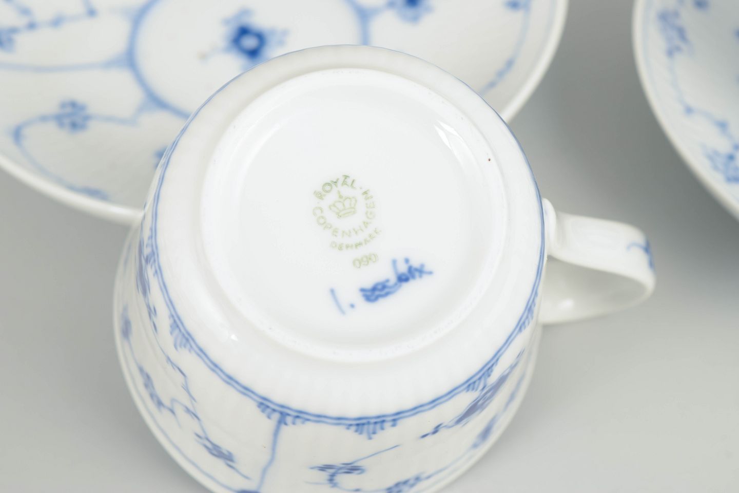 Text zugänglich auf Dänische: Royal Copenhagen, Musselmalet riflet store krus med matchende underkopper, sæt på 2.