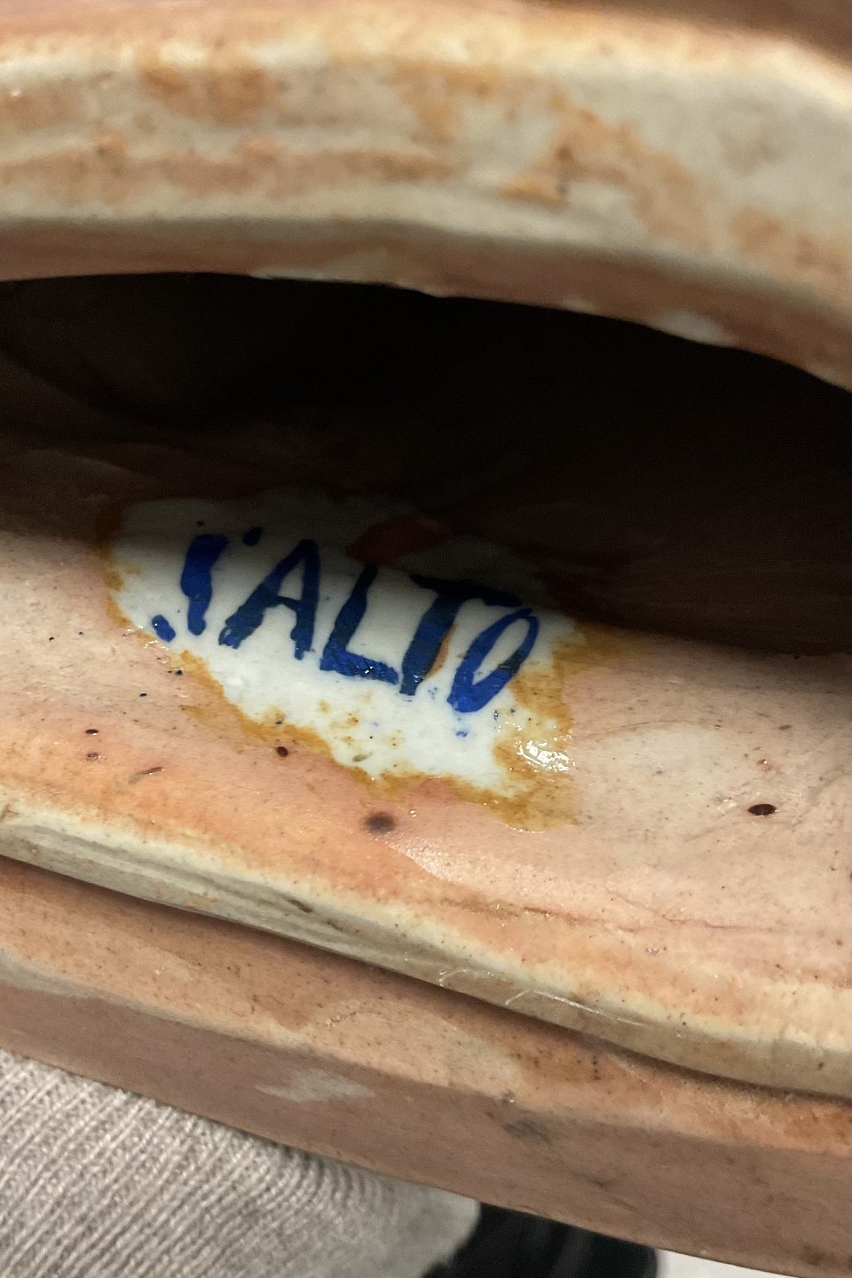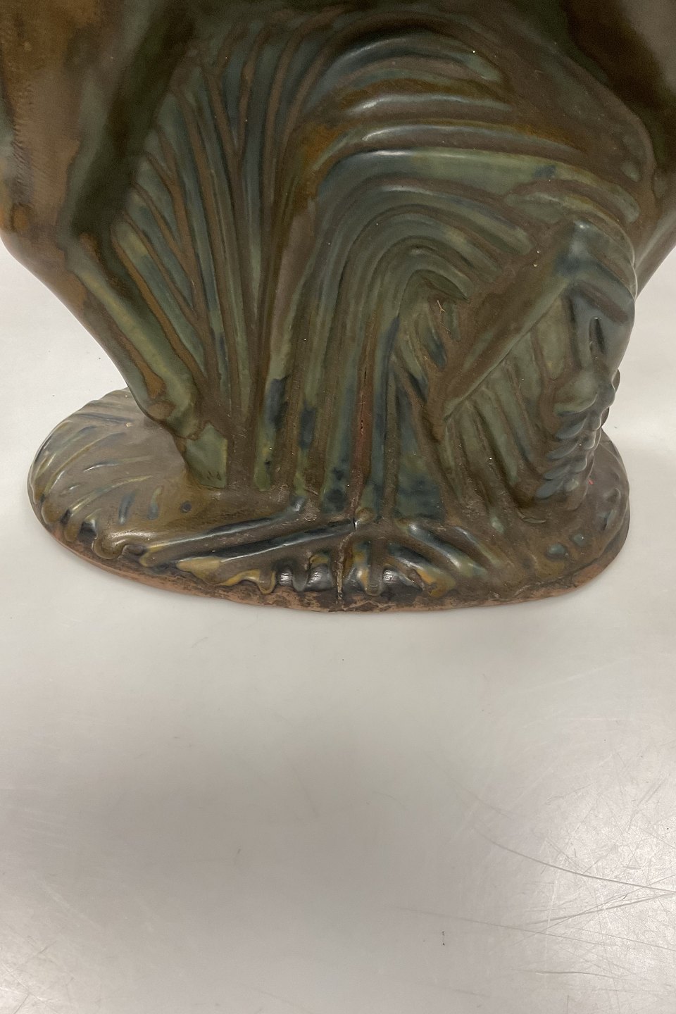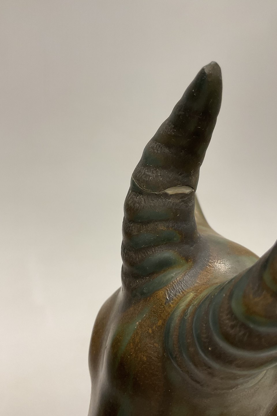 Har en reparation på det ene horn. Har et par brændingsfejl her og der.