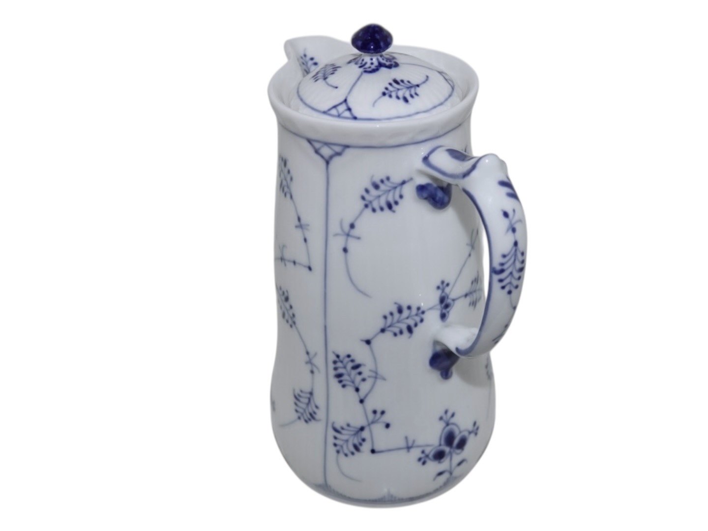 Royal Copenhagen Musselmalet Riflet, sjælden chokoladekande med tilhørende låg.