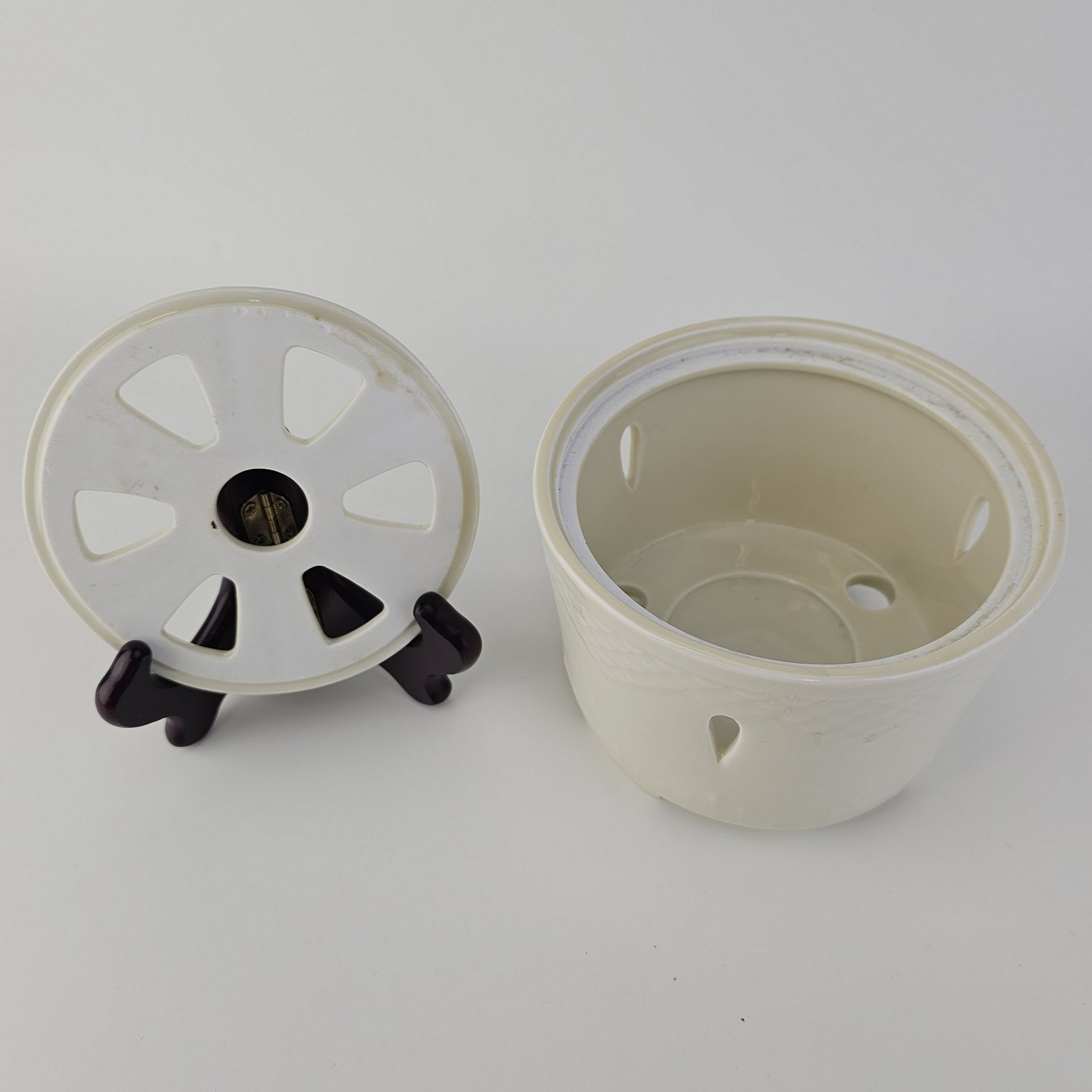 Elegance er cremefarvet glaseret porcelæn med skæl mønster