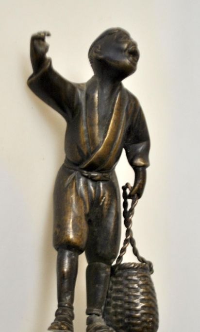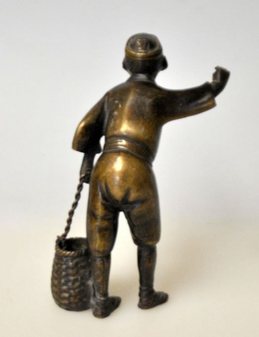 Chinesische Bronzefigur eines Jungen mit einem Topf, 19. Jahrhundert. Unsigniert. Höhe: ca. 12 cm.