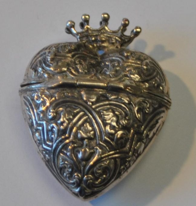 Herzförmiges Hauptwasserei aus Silber mit Krone, Dänemark, 20. Jahrhundert.