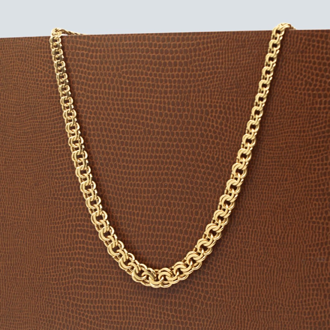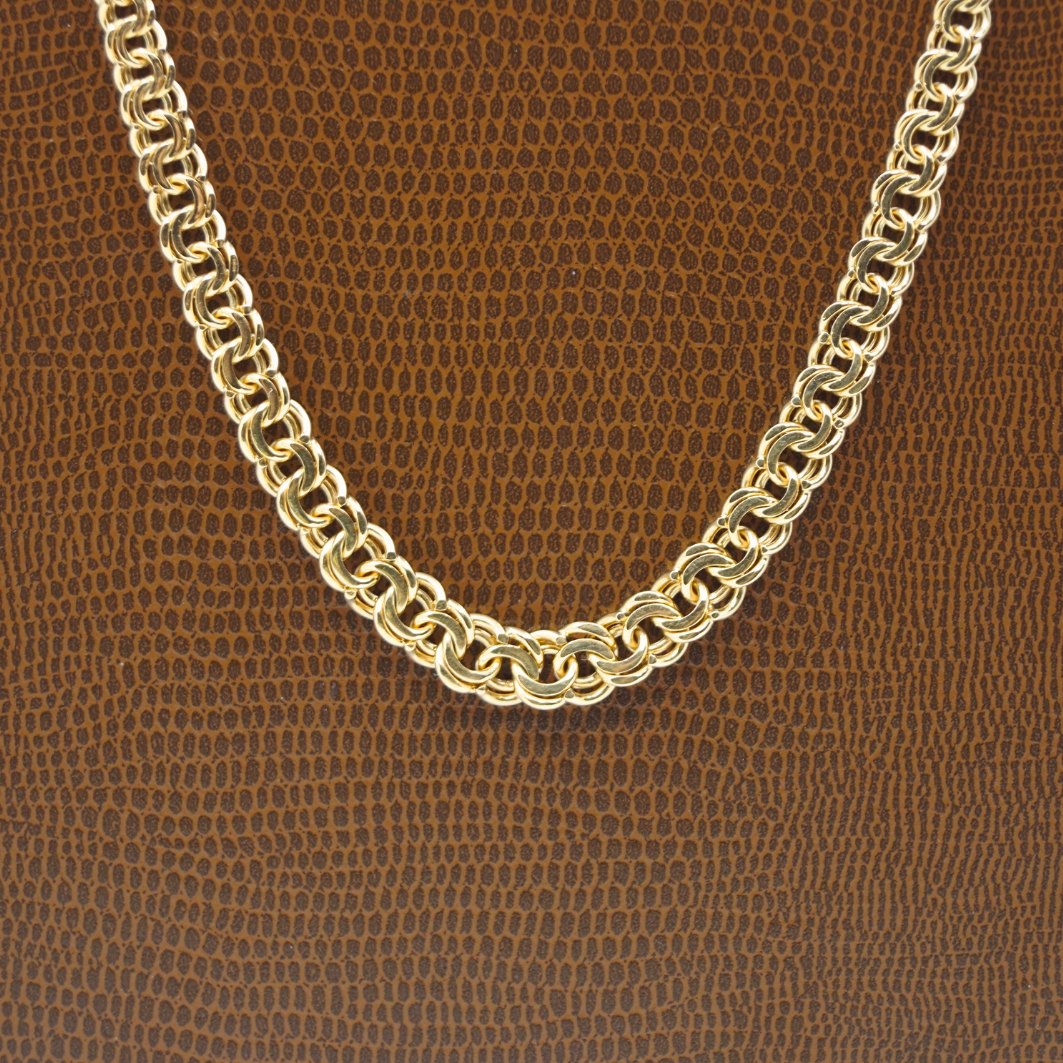 Text zugänglich auf Dänische: Bismarckhalskæde i forløb, 14 kt. guld, l. 43 cm.