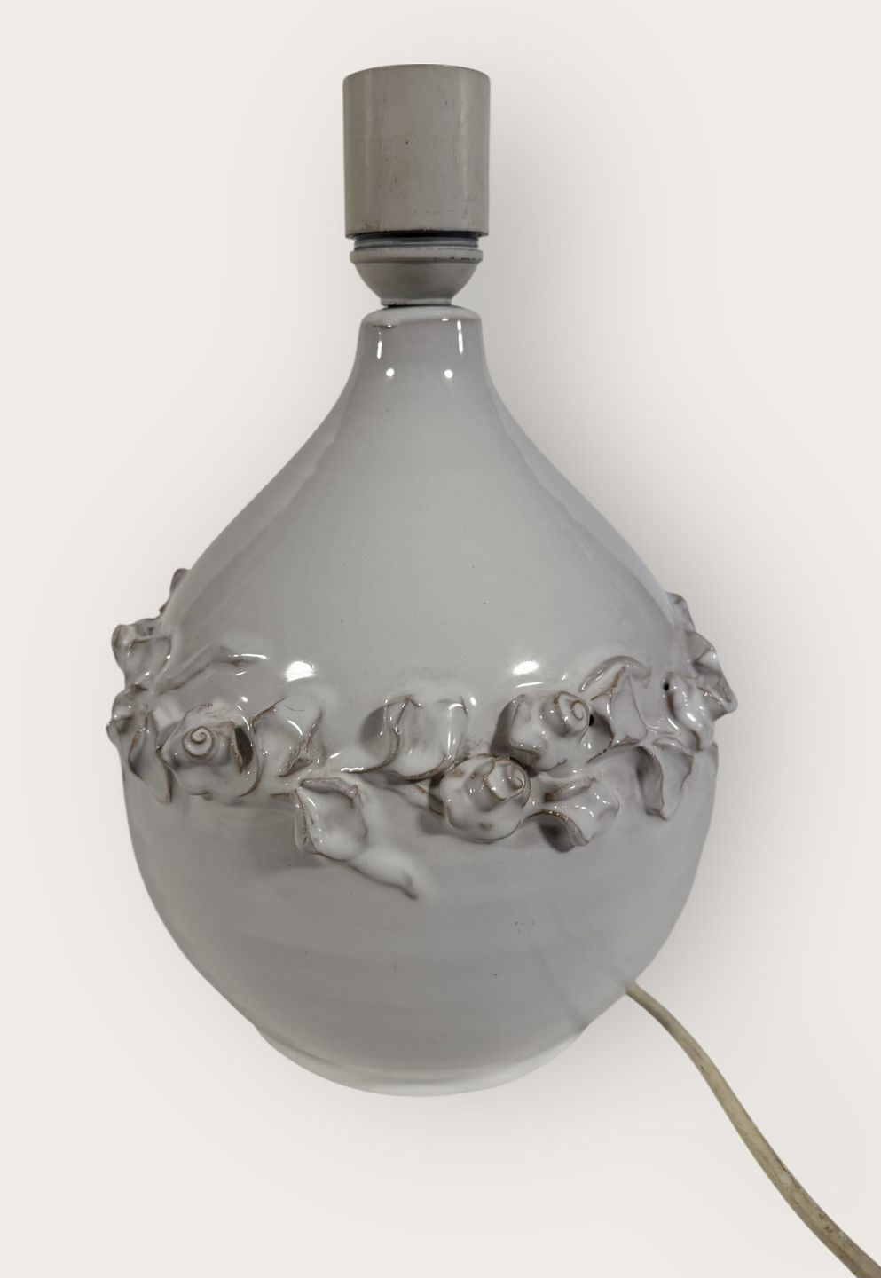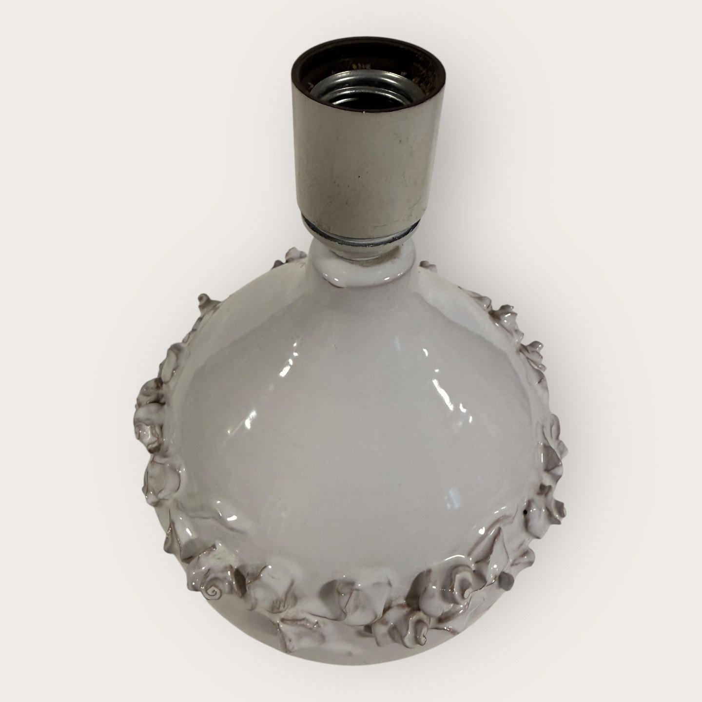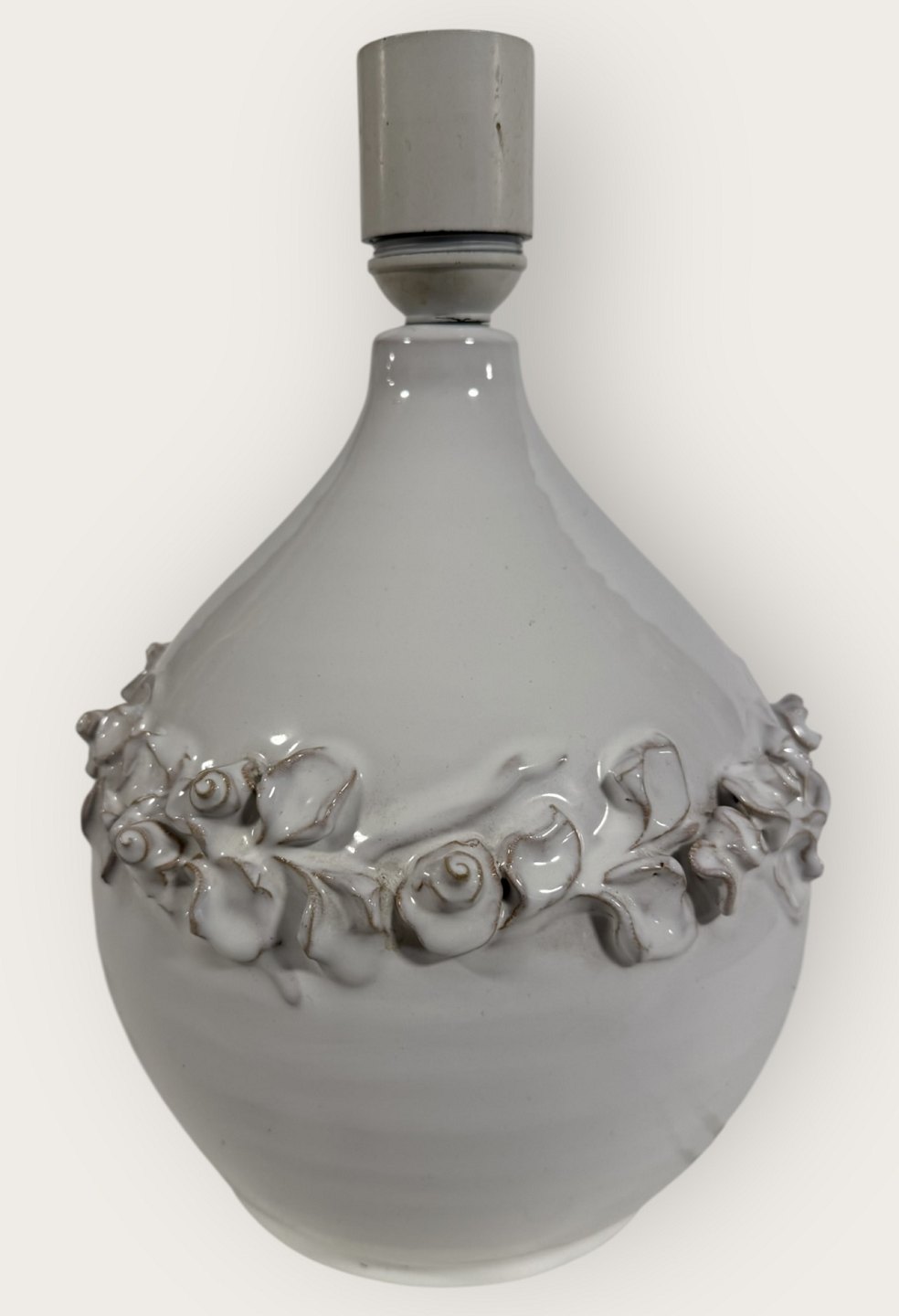 Torben Keramik, große weiße Tischleuchte mit Blumenranke, Höhe mit Fassung 27,5 cm, signiert Torben Danmark 175 *Guter Zustand*