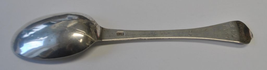 Dänischer Silberschmied (18. Jahrhundert): Silberlöffel mit Rattenschwanzmuster.