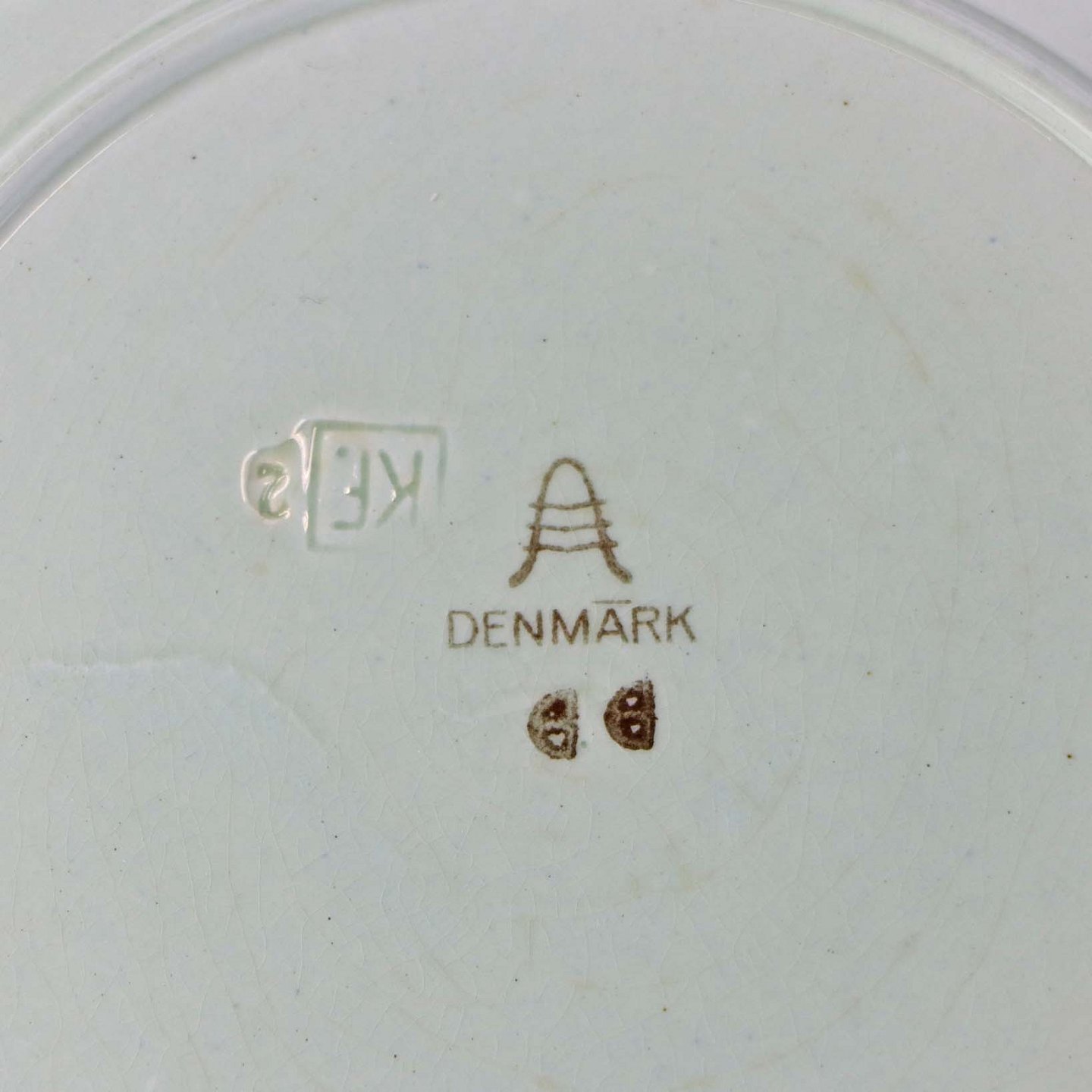 Fremstår med mørkning under glasuren samt krakkeleringer i glasuren.