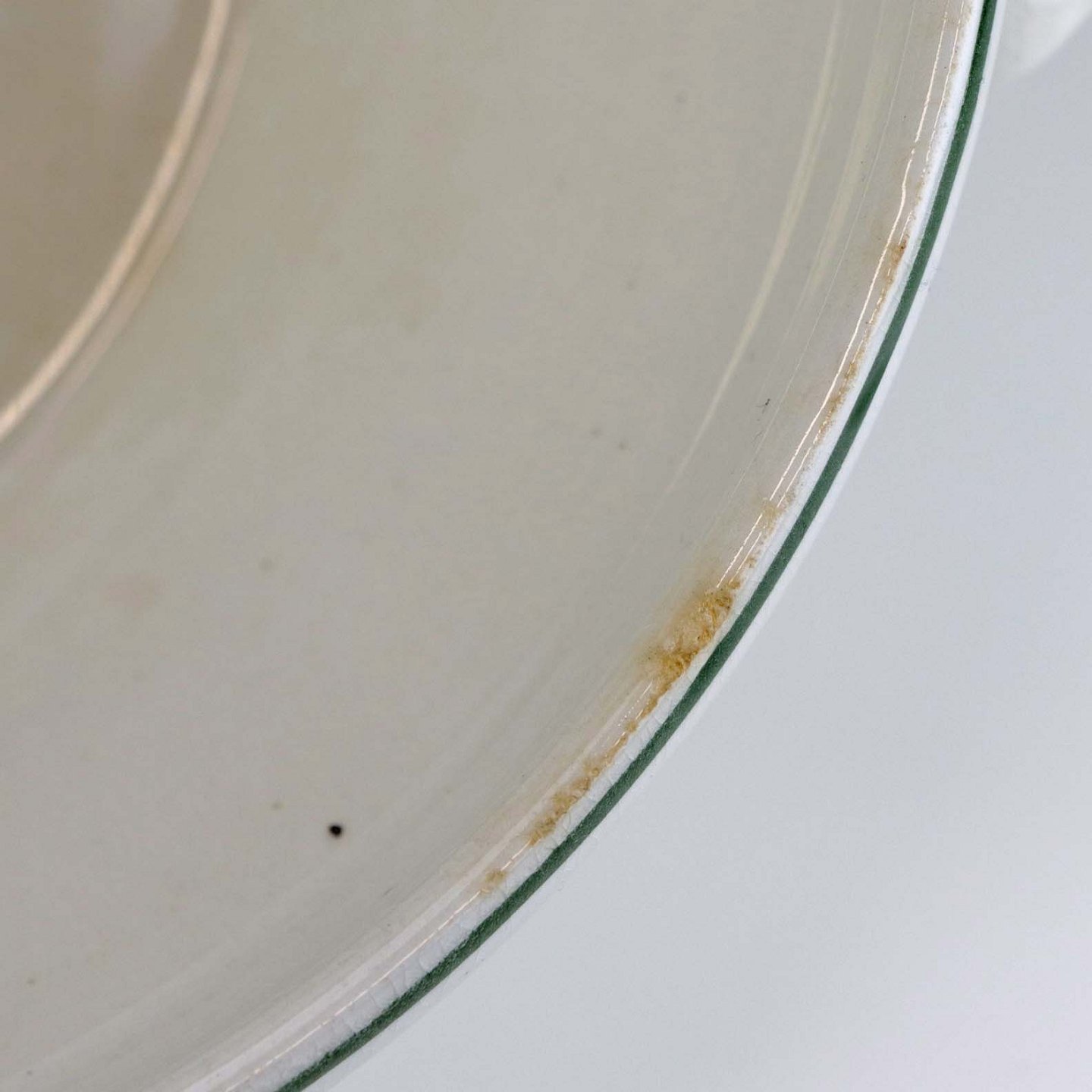 Fremstår med brugsspor på dekorationen og topkanten, krakkeleringer i glasuren og hårfin gennemgående revne ved toppen af terrinen.