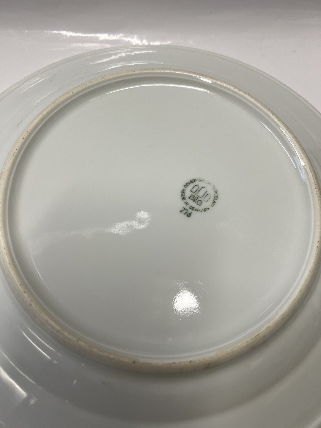 Bing & Grøndahl, Middags tallerkener med tidligt logo fra Hotel 3 Falke på Frederiksberg.