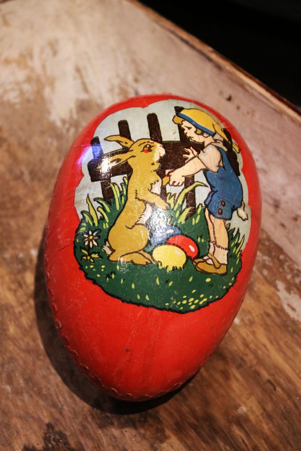 Gammelt påskeæg i bemalet pap fra begyndelsen af 1900 tallet