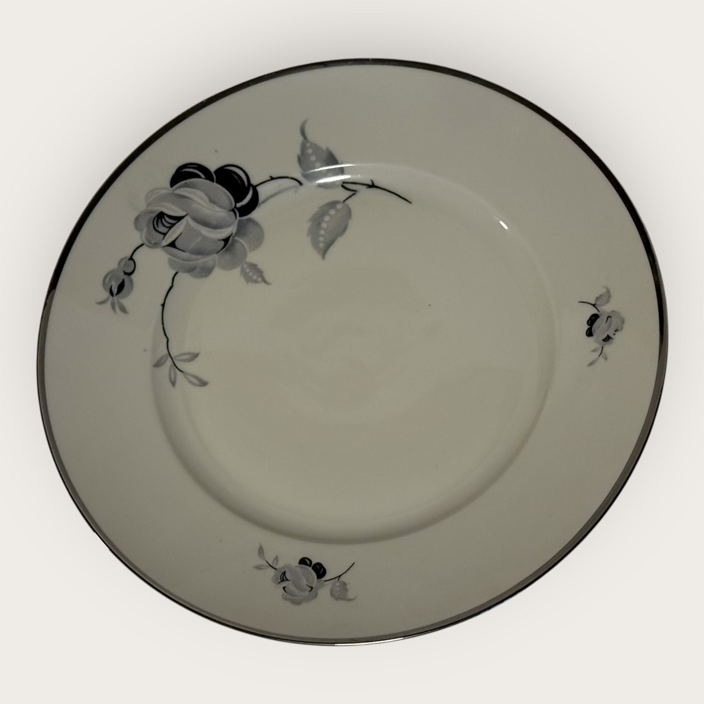 | Schwarze Rose, mit Platinrand, KPM, Lyngby, Speiseteller, 21 cm Durchmesser *Guter Zustand*