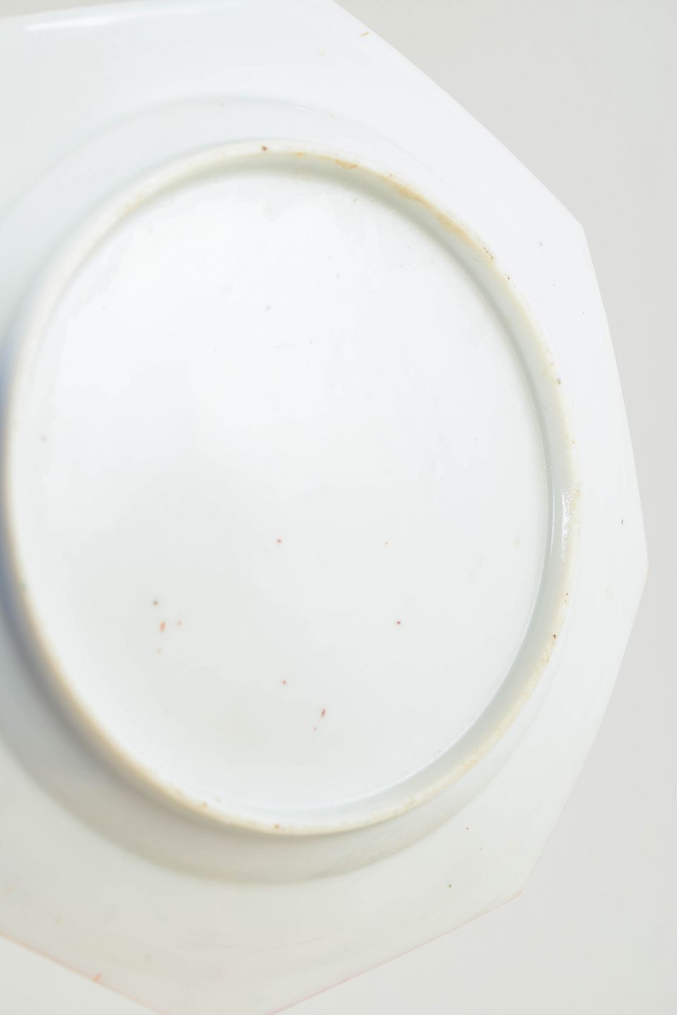 Kinesisk eksportporcelæn fra 1700-tallet blev fremstillet under Qing-dynastiet, primært i Jingdezhen, som var centrum for kejserlig og kommerciel porcelænsproduktion. Mange genstande blev produceret specifikt til det europæiske marked og kendetegnes ved kombinationen af kinesiske motiver og former tilpasset vestlig smag. Ottekantede tallerkener var særligt populære i 1700-tallet og blev ofte dekoreret med symbolske figurer som drager, der i kinesisk kultur repræsenterer magt, styrke og held.