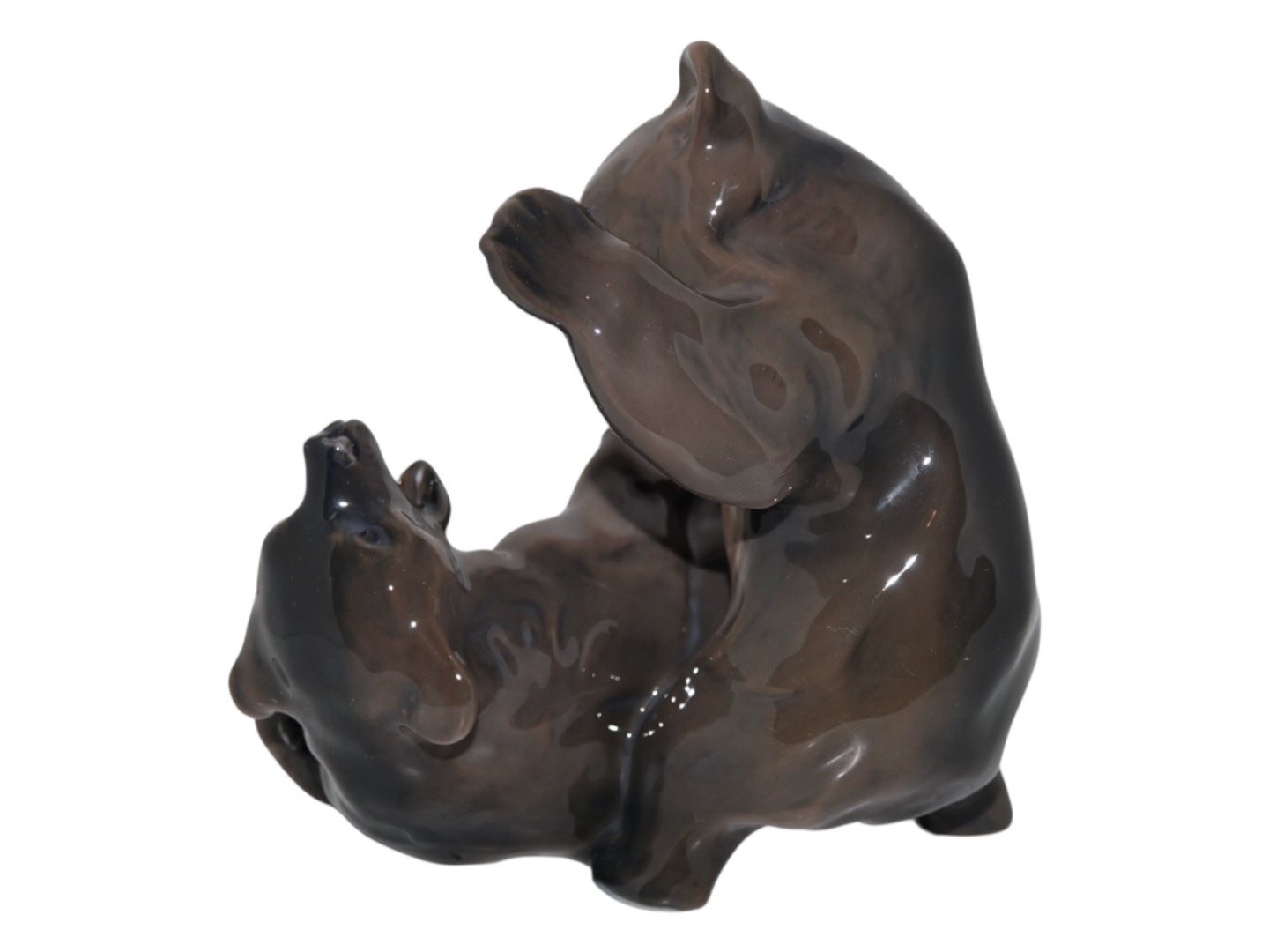 Royal Copenhagen figur, to brune kæmpende isbjørne. Sjælden variant med denne farve.