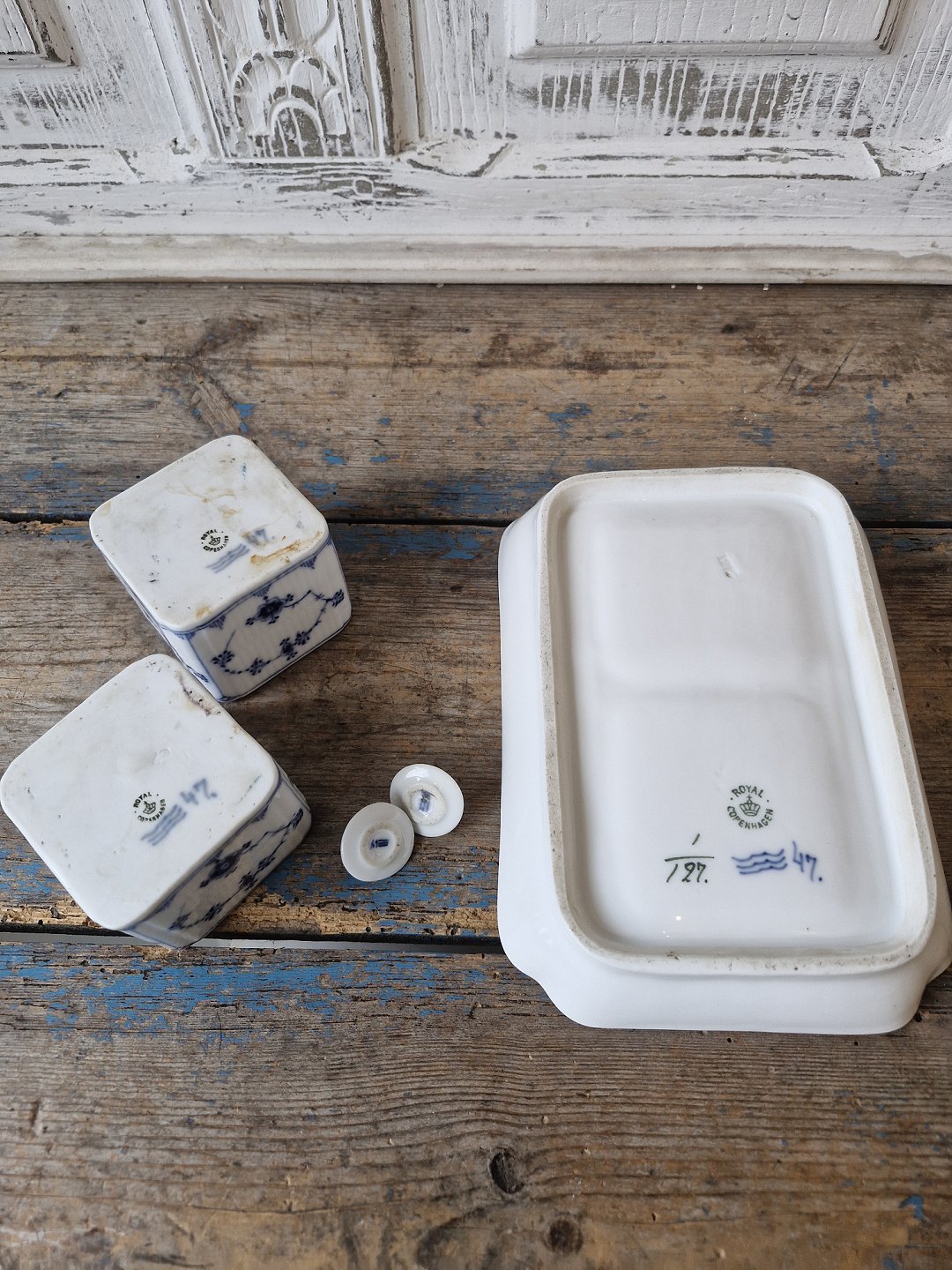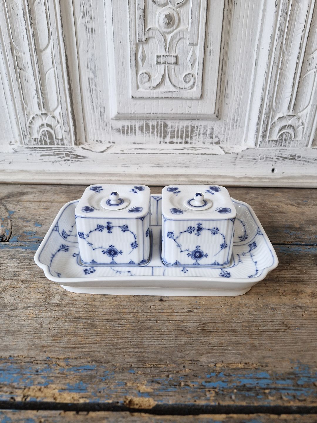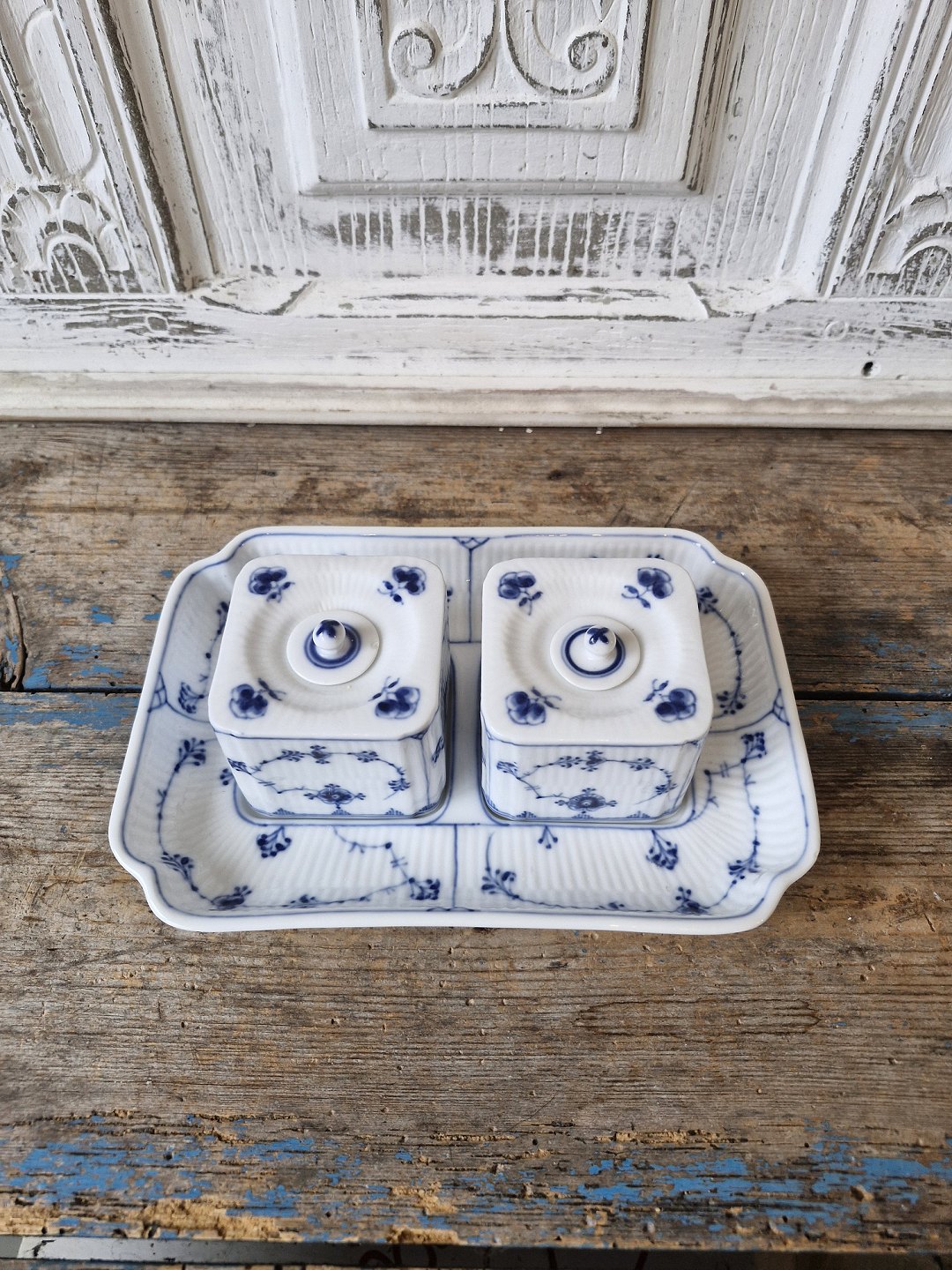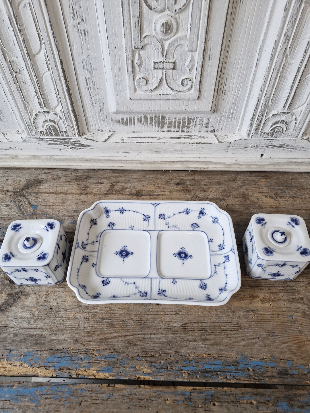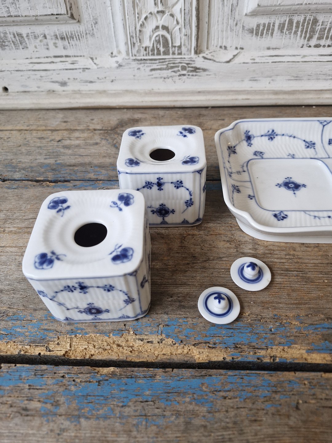 Text zugänglich auf Dänische: Royal Copenhagen Musselmalet riflet skrivesæt med to blækhuse no. 127