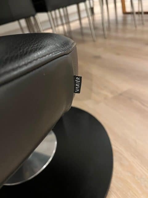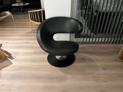 Exklusiver VARIER Peel Club Lounge-Sessel. VARIER Peel Club Lounge-Sessel aus schwarzem Anilinleder, Preisgruppe 6, mit einem Gestell aus schwarz lackiertem Eschenholz. Neupreis: 21.999 DKK. Der Peel Club Sessel wurde von der renommierten norwegischen Marke Varier entworfen und ist eine kompaktere Version des Varier Peel Lounge-Sessels. Das Modell vereint elegantes Design mit hoher Funktionalität und Komfort. Dieser Sessel verfügt über eine Öffnung nach rechts und ein Gestell aus schwarz lackiertem Eschenholz. Er stammt aus einem Nichtraucherhaushalt ohne Haustiere und wurde ausschließlich als Dekorationsobjekt genutzt, weshalb er sich in einem sehr guten Zustand befindet. Peel Club ist bekannt für sein aktives Sitzkonzept, das optimale Unterstützung und vielfältige Sitzpositionen ermöglicht und so für Komfort und Abwechslung sorgt. Maße: Höhe: 78 cm, Breite: 82 cm, Tiefe: 77 cm, Sitzhöhe: 42 cm