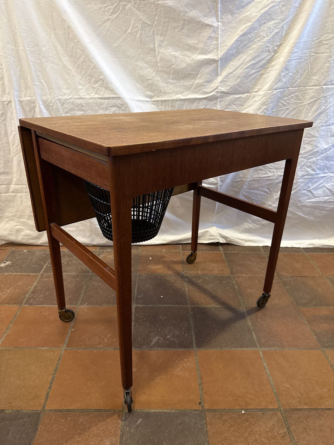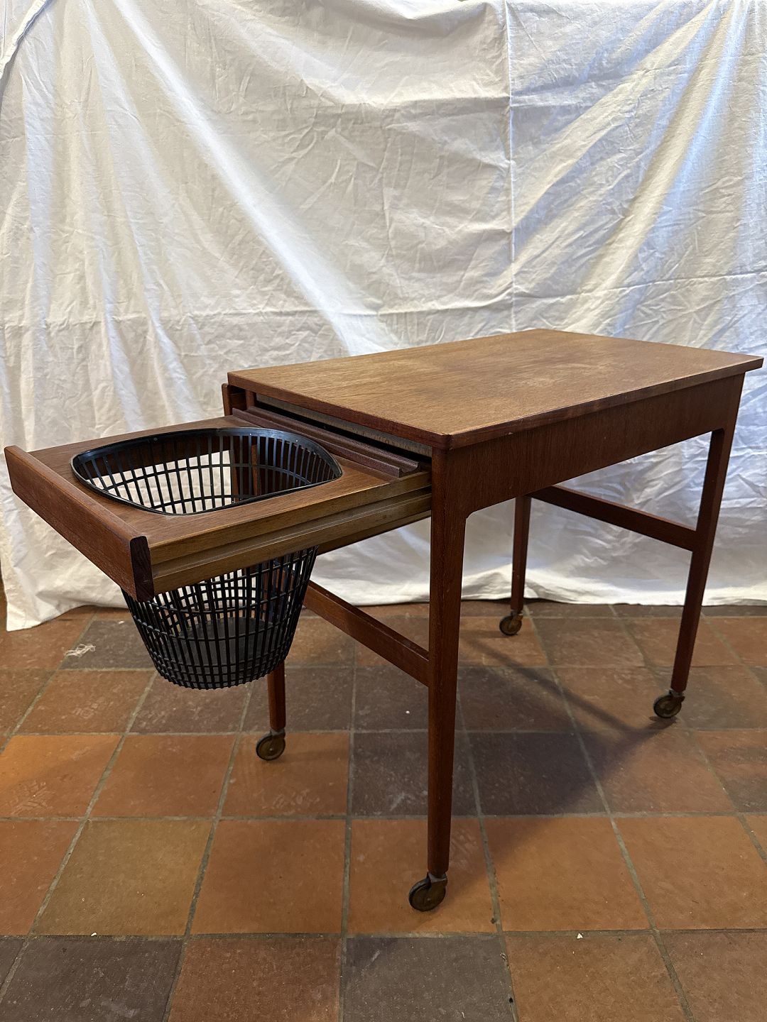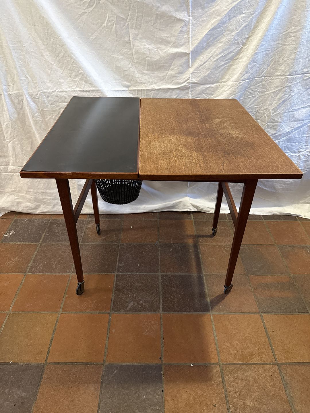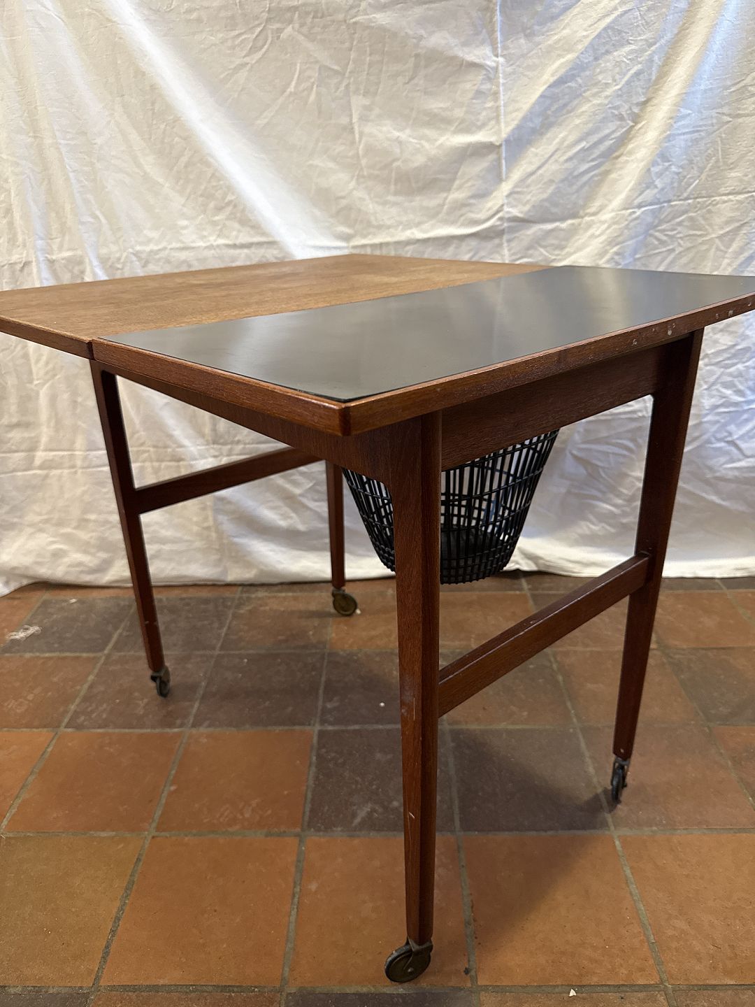 Text zugänglich auf Dänische: Dansk møbelproducent sybord i fineret teak m. plade i formica.