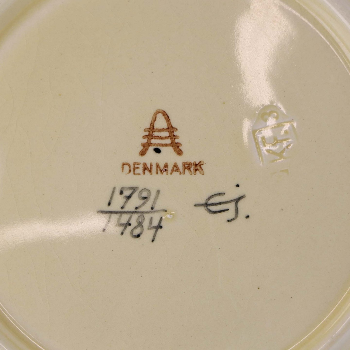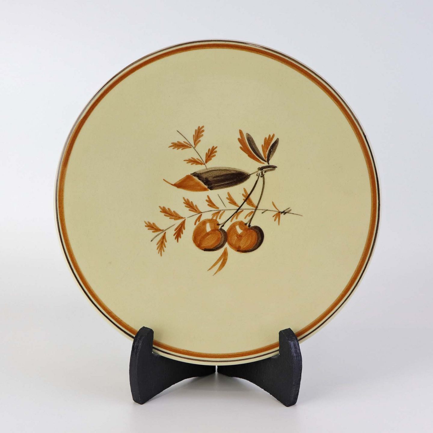 Tallerken i fajance fra frugtstellet Sibylla fremstillet i perioden 1934-1939. Nr. 1791/1484