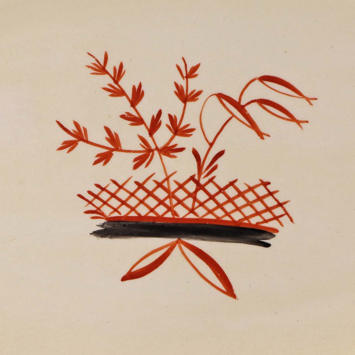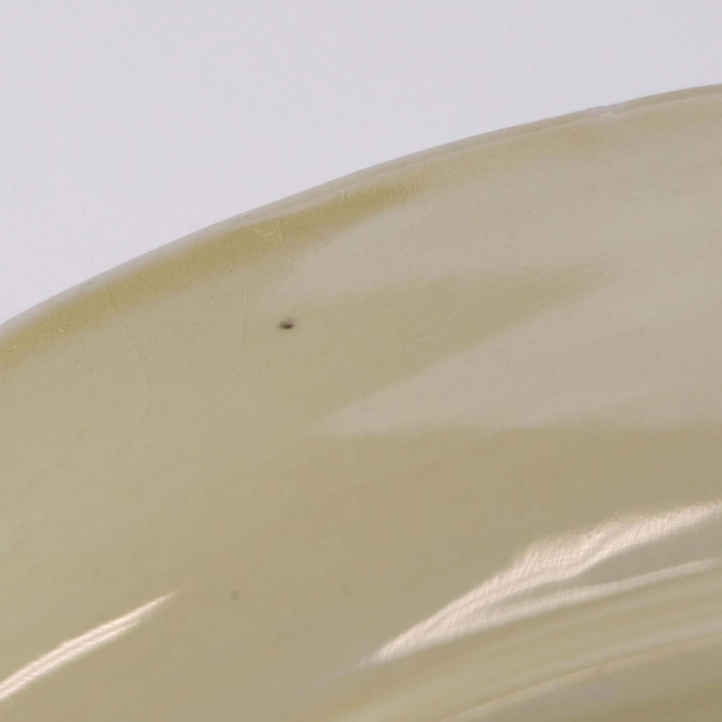 Fremstår med krakeleringer, brugsspor på dekorationen samt mindre mørk prik under glasuren på bagsiden.