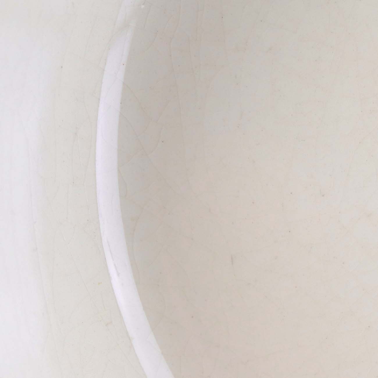 Fremstår med ujævnhed i glasuren og krakkeleringer i glasuren.