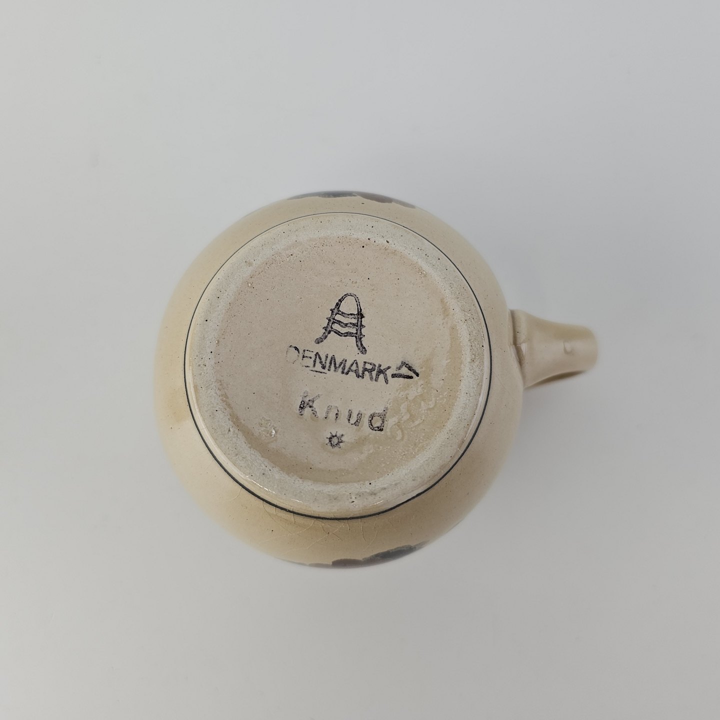 Knud er cremefarvet fajance dekoreret med flettet kant og brune og orange blomster. Stellet blev produceret i år 1934-1963.