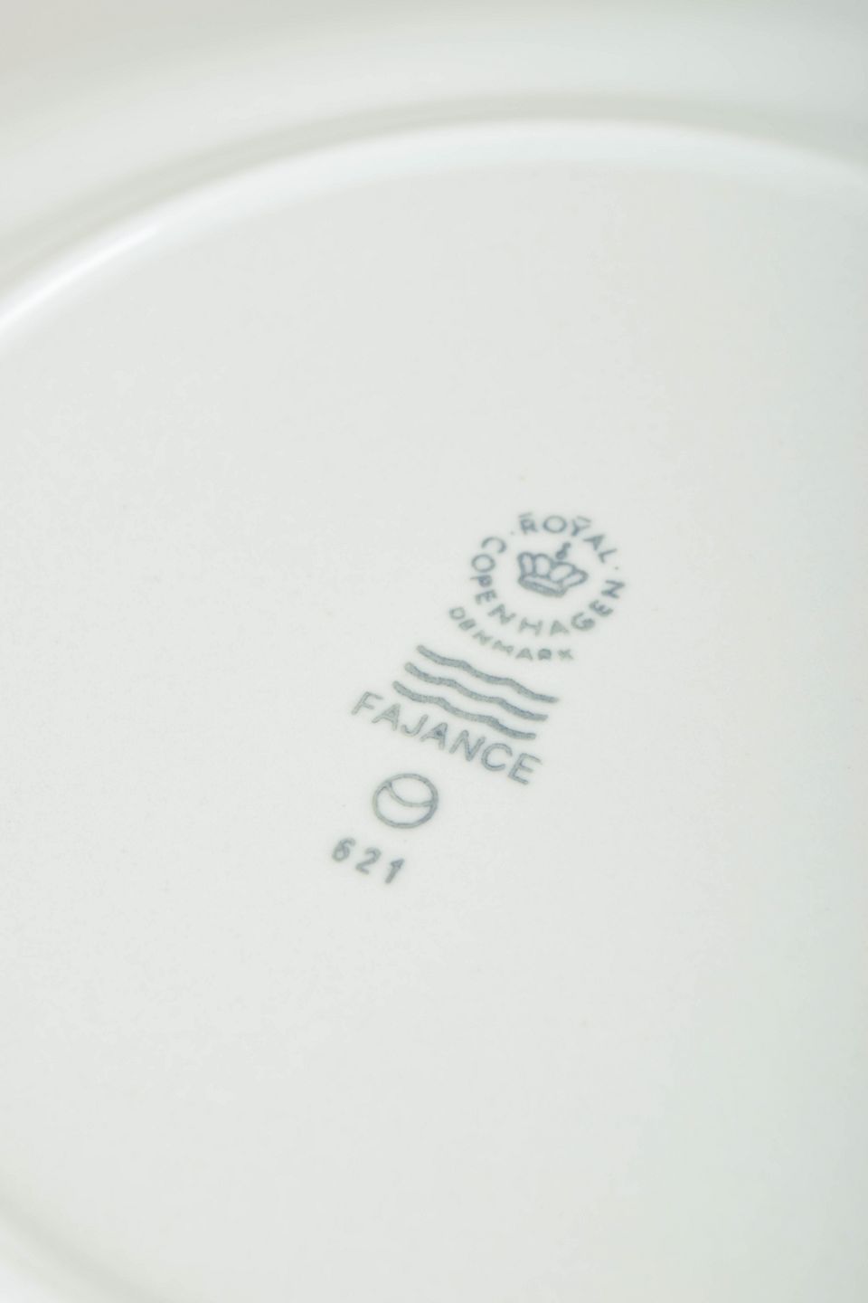 Text zugänglich auf Dänische: Grethe Meyer for Royal Copenhagen, sæt af fem frokosttallerkener, Blåkant.