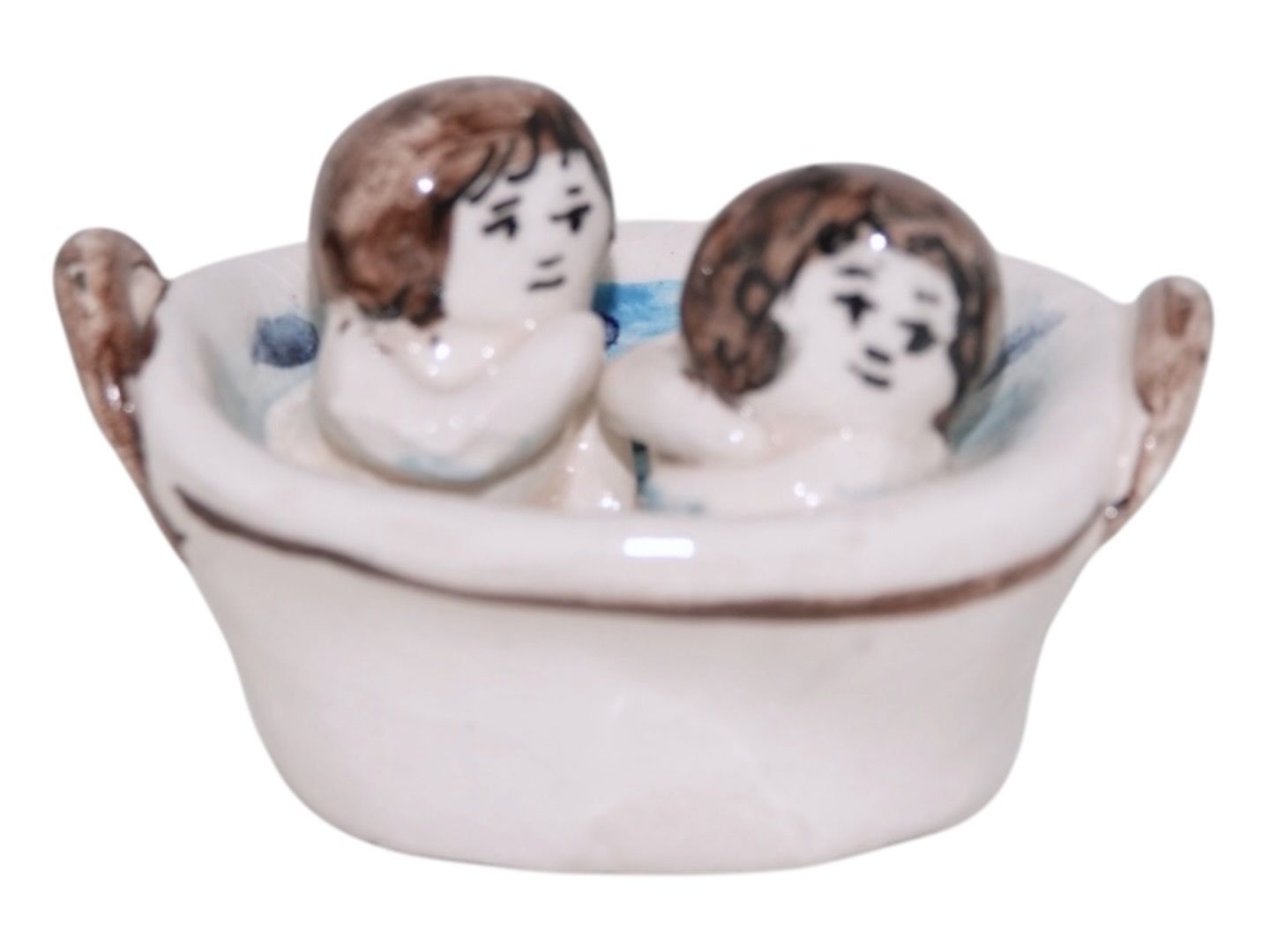 Doreen Middelboe keramik, lille figur med to børn i badekar.