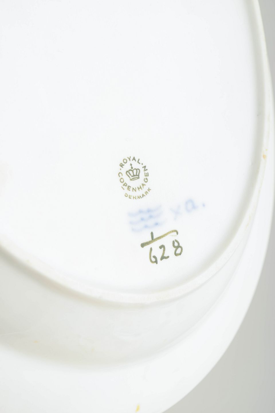 Text zugänglich auf Dänische: Royal Copenhagen Musselmalet Halvblonde, ovalt fad.