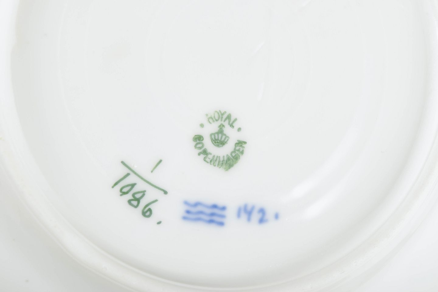 Royal Copenhagen blev grundlagt i 1775 i København under kongelig bevilling. Fabrikken er internationalt anerkendt for sit håndmalede porcelæn og sit høje kunstneriske niveau. Musselmalet Helblonde er en videreudvikling af det klassiske Musselmalet Riflet stel og kendetegnes ved sin detaljerede gennembrudte blondekant, der kræver stor håndværksmæssig præcision.
