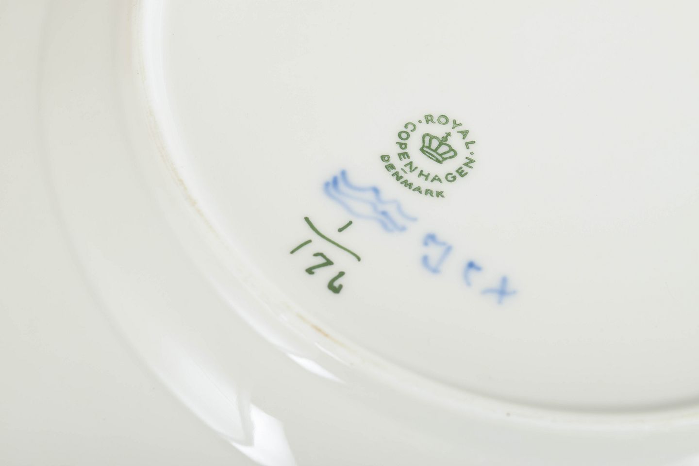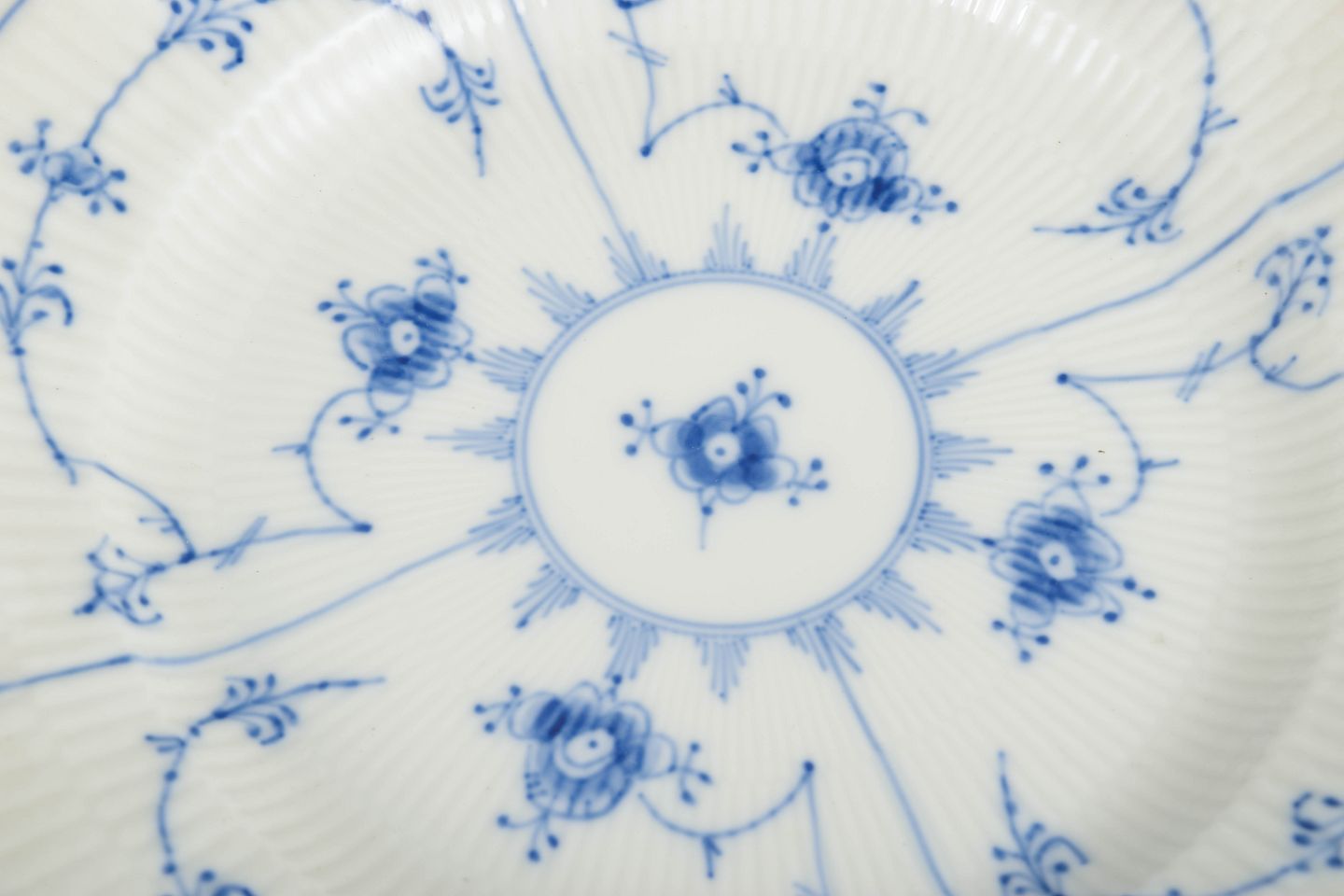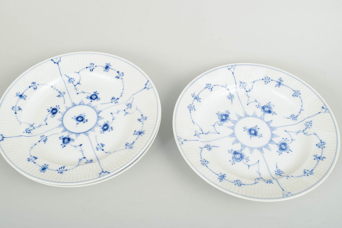 Text zugänglich auf Dänische: Royal Copenhagen Musselmalet Riflet, sæt af tre middagstallerkener.