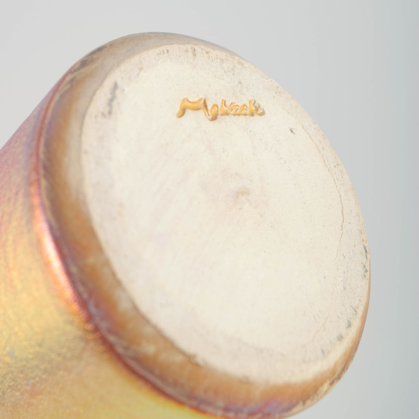 Mobach Keramiek blev grundlagt i Utrecht i 1895 og er kendt for sit eksperimenterende arbejde med glasurer og former gennem det 20. århundrede. I 1960’erne og 70’erne udviklede værkstedet en række moderne, skulpturelle former med avancerede metalliske og iriserende glasurer, som i dag er eftertragtede inden for hollandsk studiokeramik.
