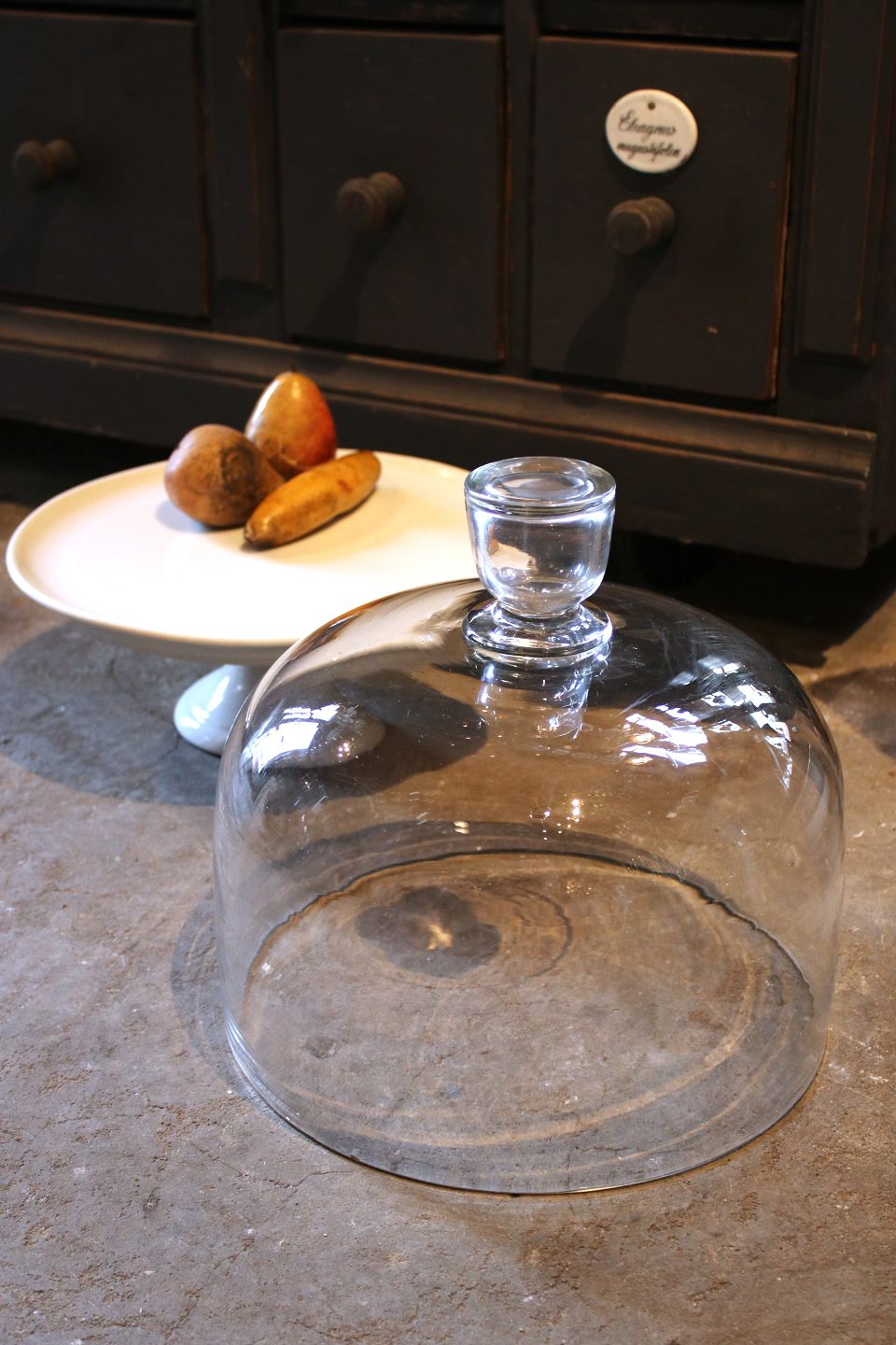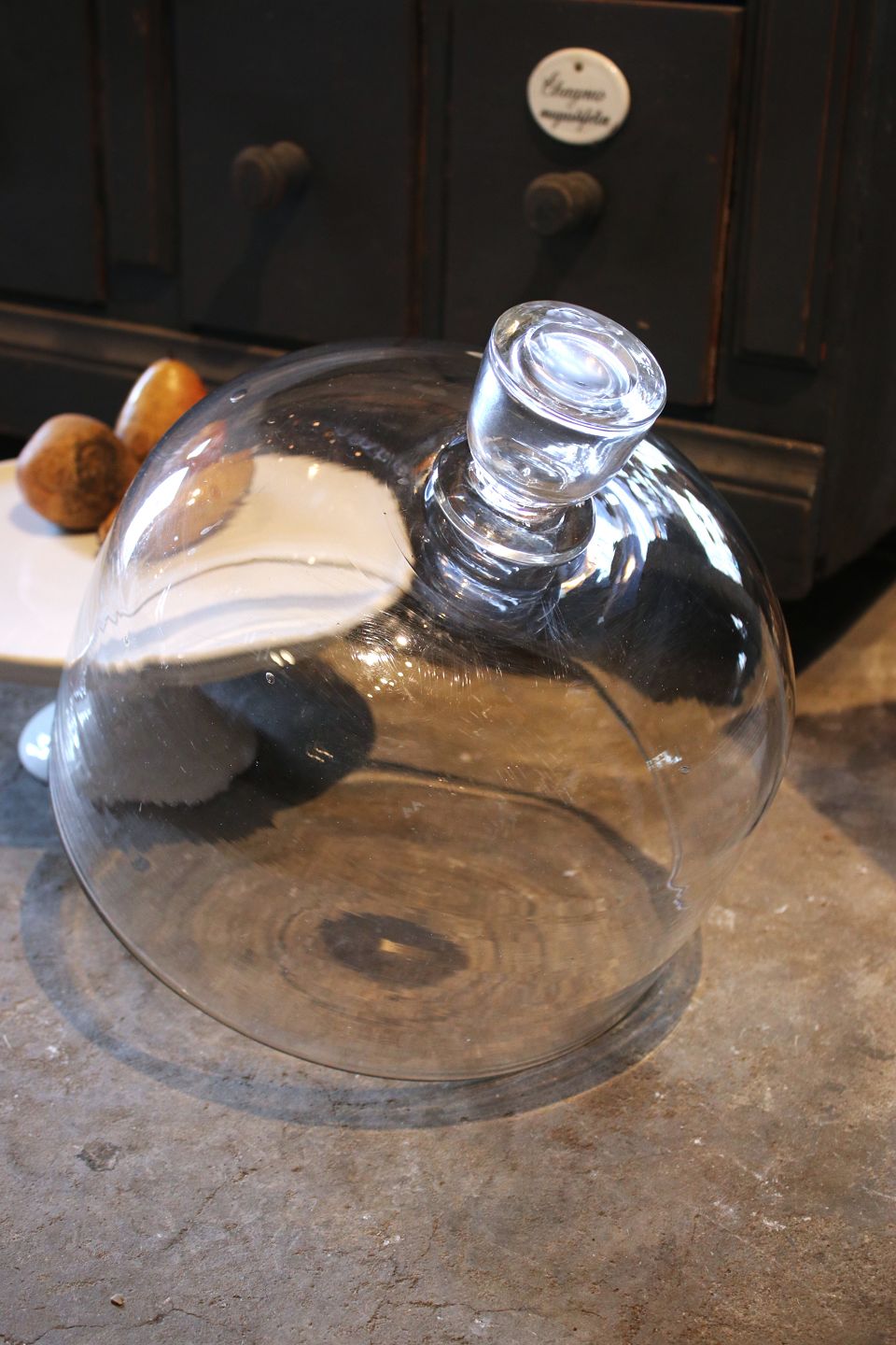 Stor , gammel mundblæst glasklokke med knop.
