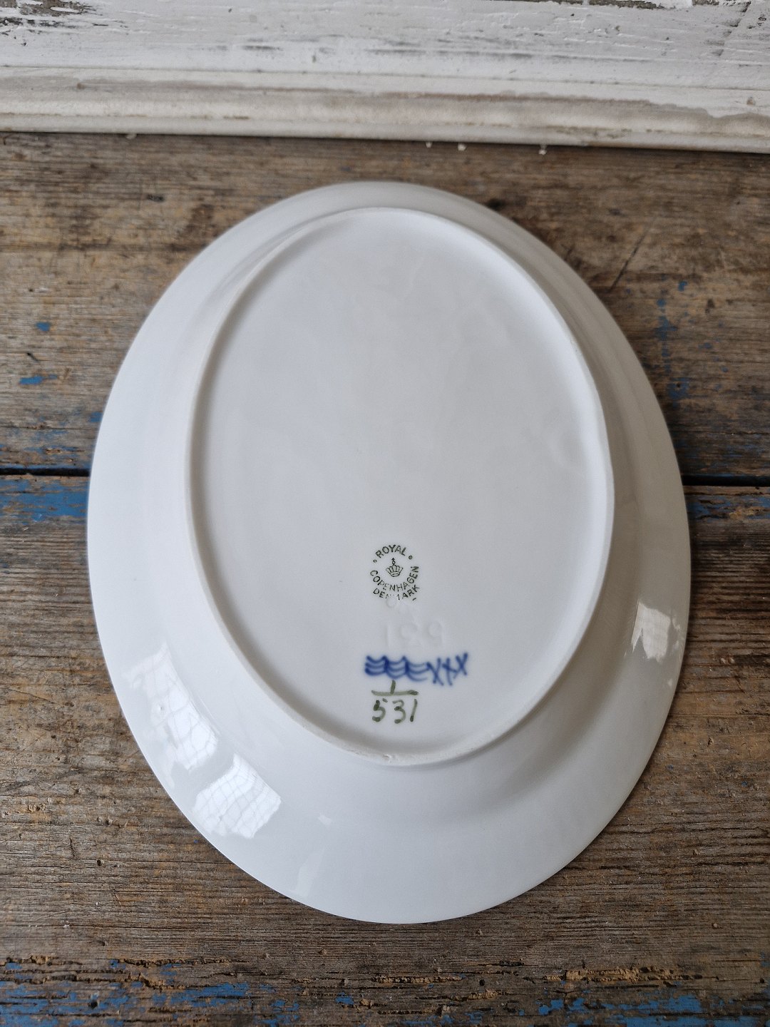 Text zugänglich auf Dänische: Royal Copenhagen Musselmalet halvblonde fad no. 531