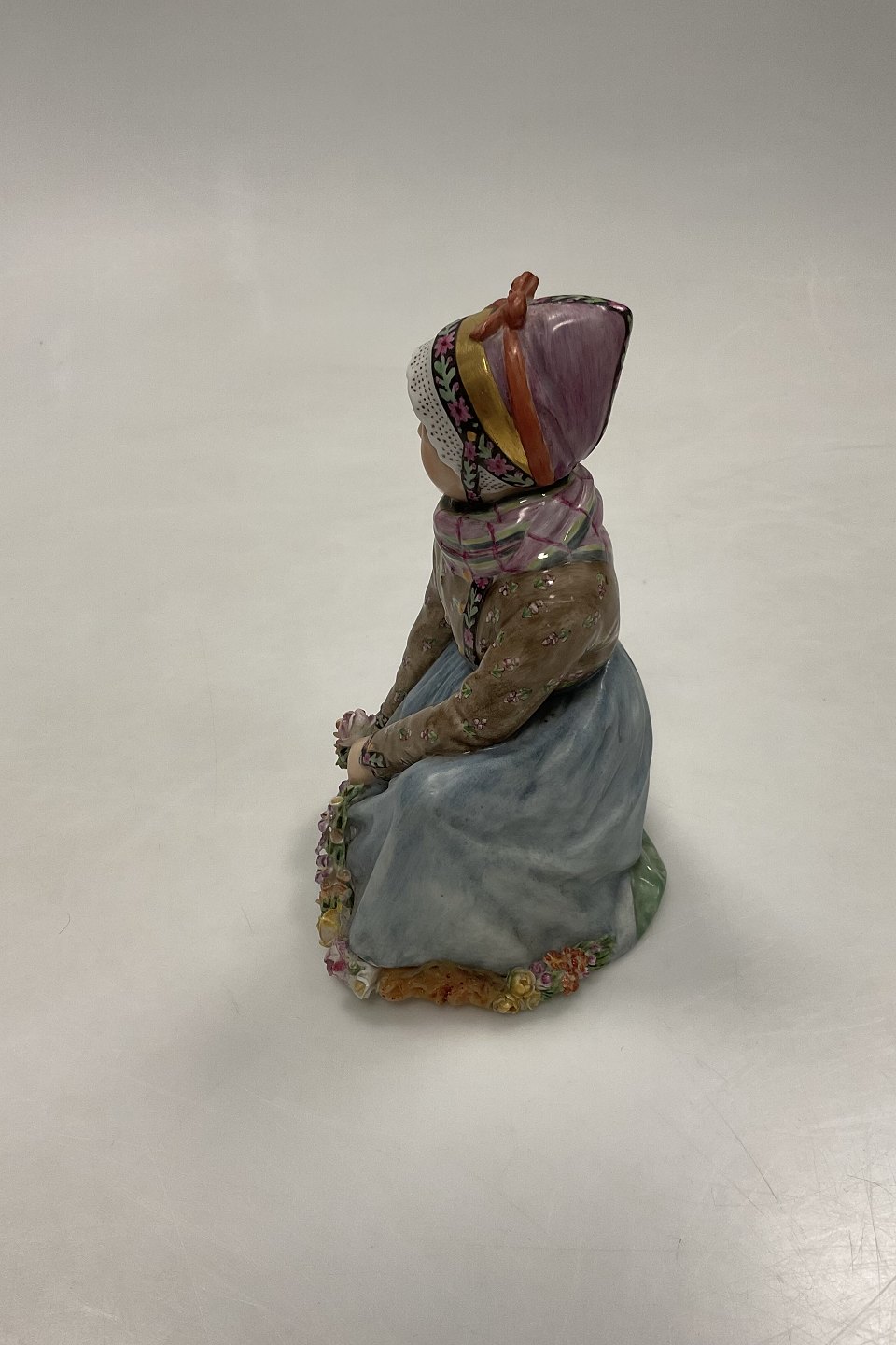 Royal Copenhagen Siddende Fanøpige af Carl Martin-Hansen No. 12413. Med Juliane Marie stempel. Måler 14,5 cm. 1. sortering, med små afslag på blomster - se billeder