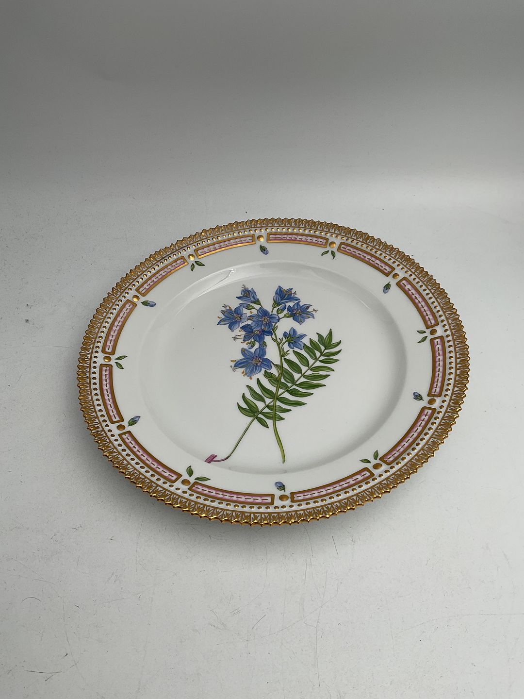 Royal Copenhagen Flora Danica Frokosttallerken No. 20/3550 Måler 22 cm. (8.66 inch) 1. Sortering. Latinsk navn: Polemonium coeruleum L