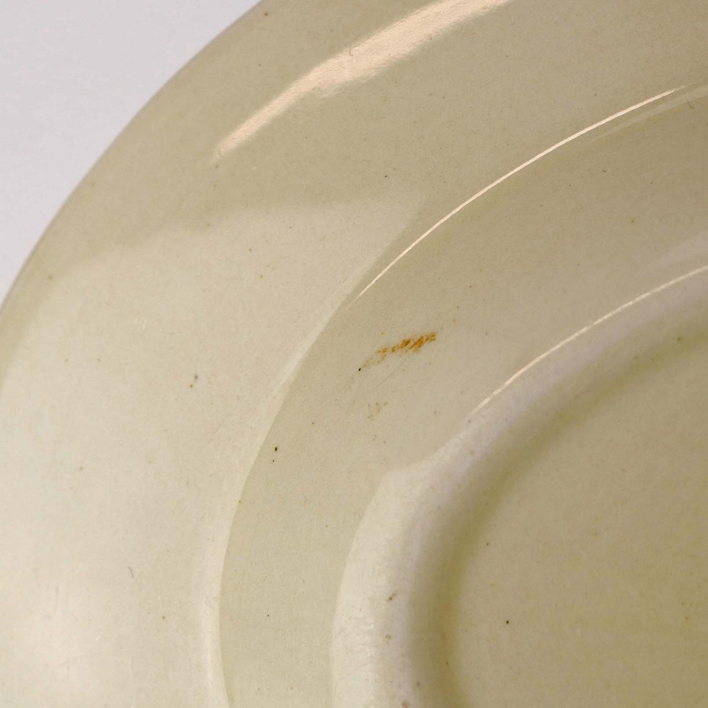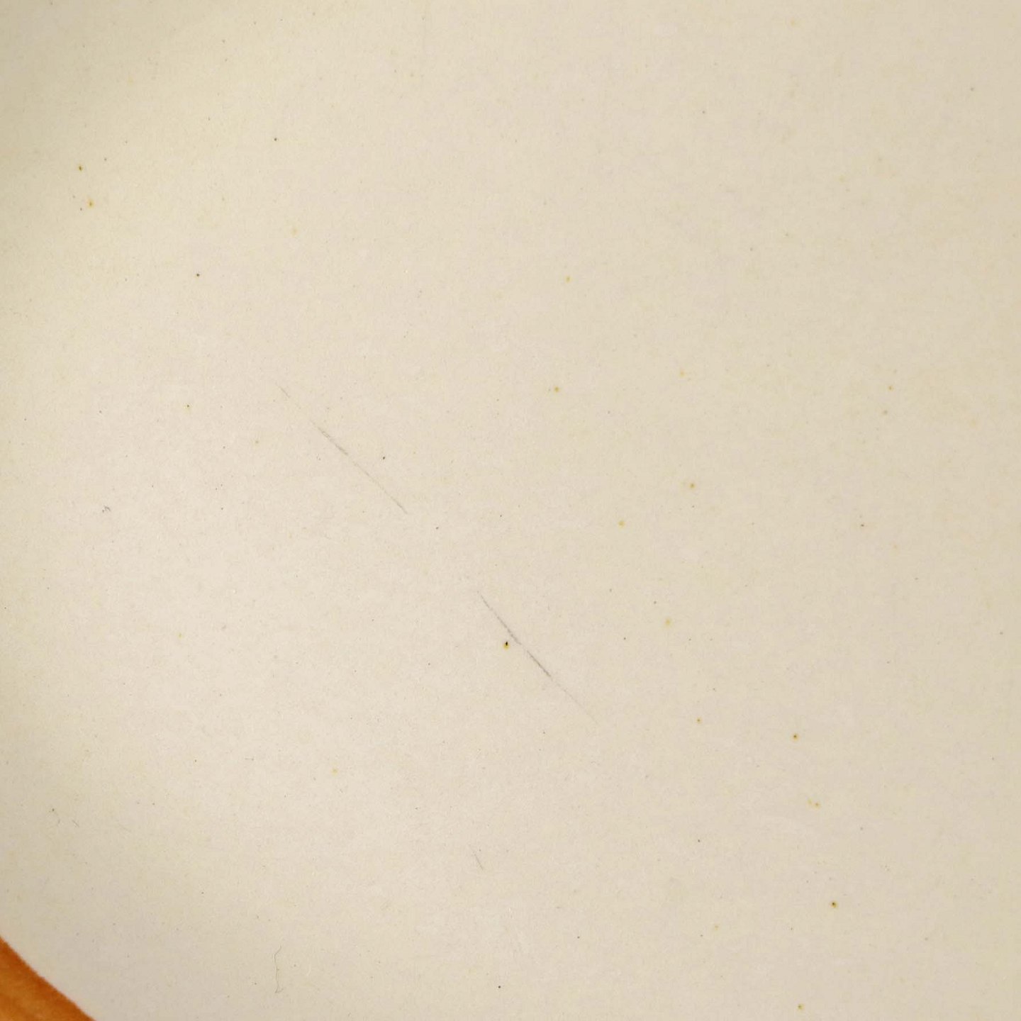 Fremstår med ujævnhed i glasuren enkelte ridser samt brugsspor på baggrunden.