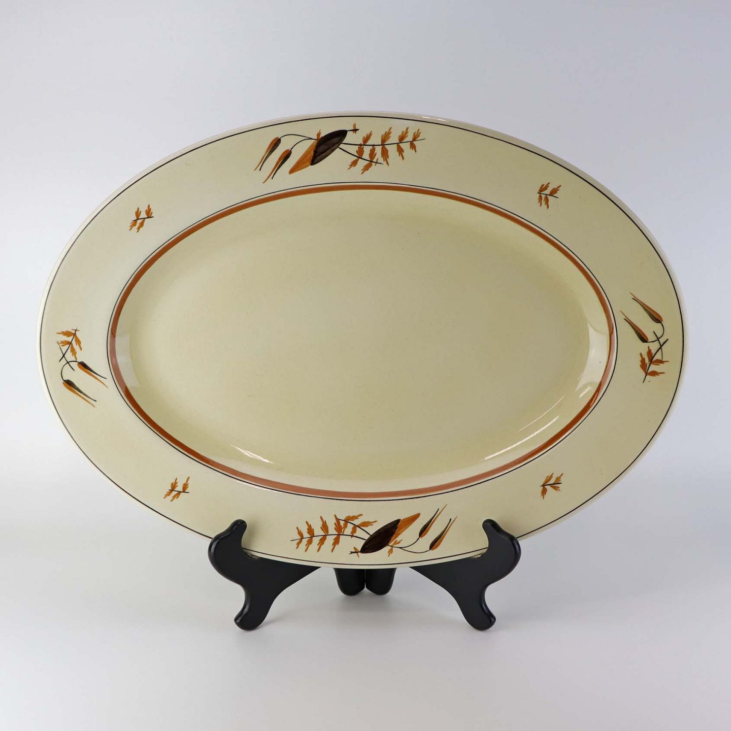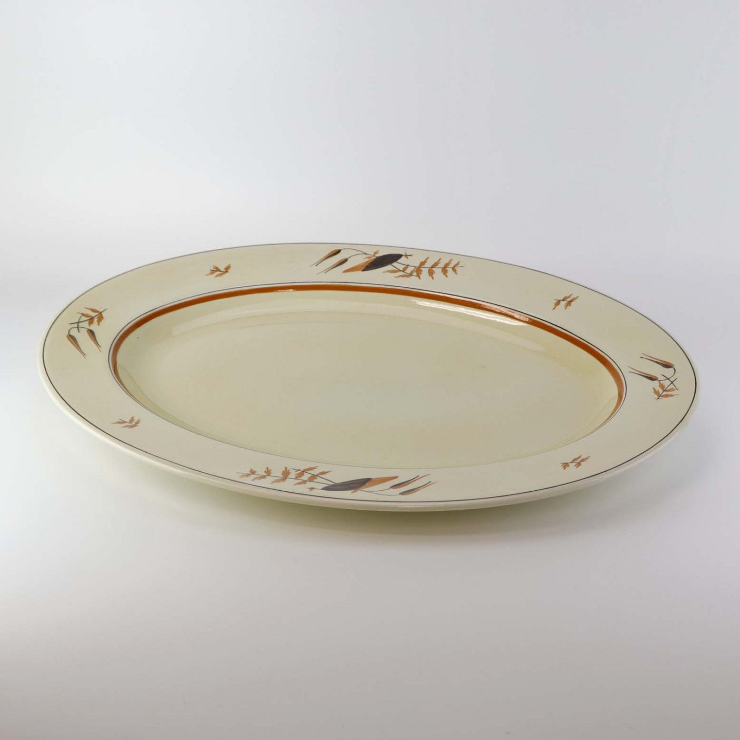 Stor ovalt serveringsfad i fajance fra stellet Åkjær, som blev fremstillet i perioden 1934-1939. Nr. 253