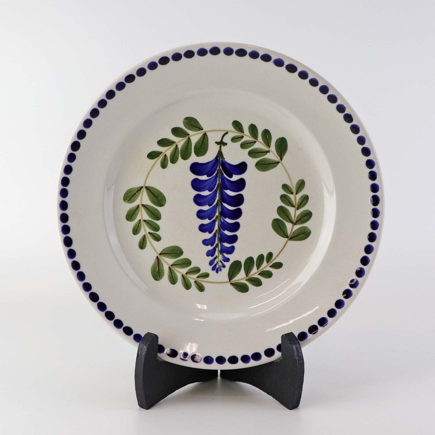Flad frokosttallerken i fajance fra stellet Blåregn. Stellet er fremstillet i perioden år 1903-1933. Nr. 522/1425
