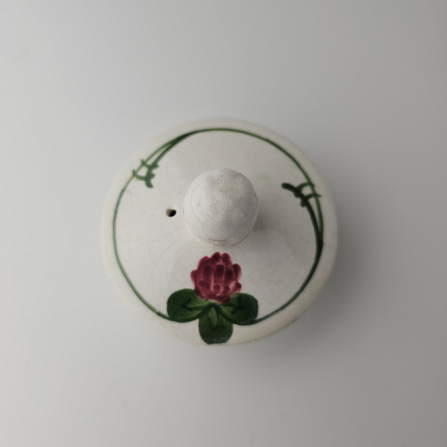 Kløver er fajancestel med motiv af rødkløver på lys baggrund.
