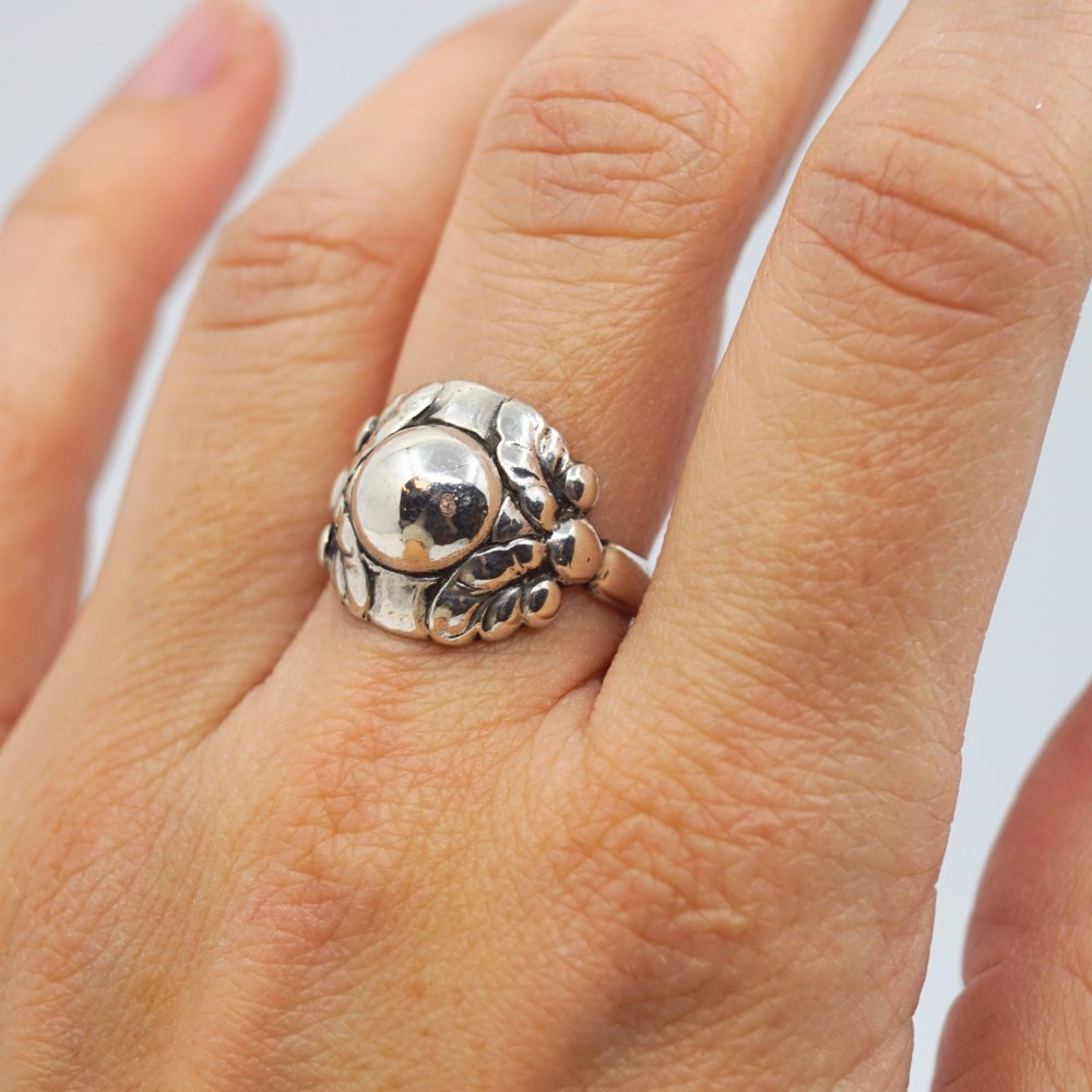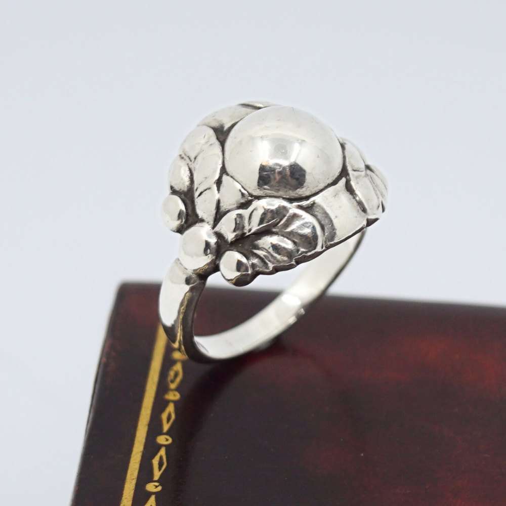 Text zugänglich auf Dänische: Georg Jensen; Ring af sterling sølv prydet med sølv sten.