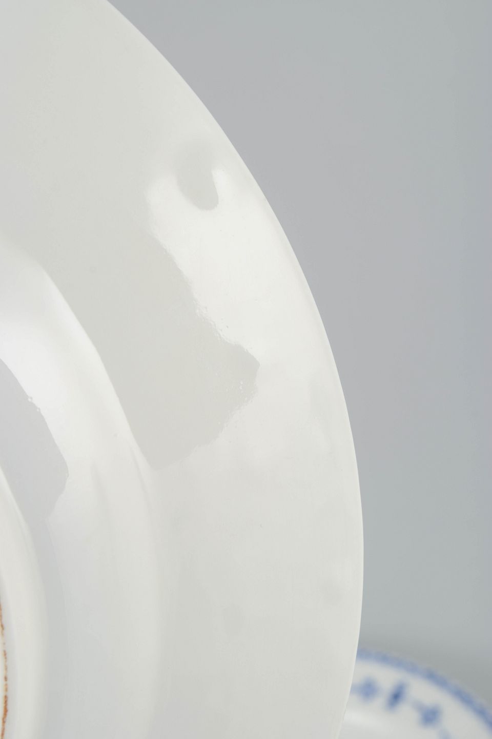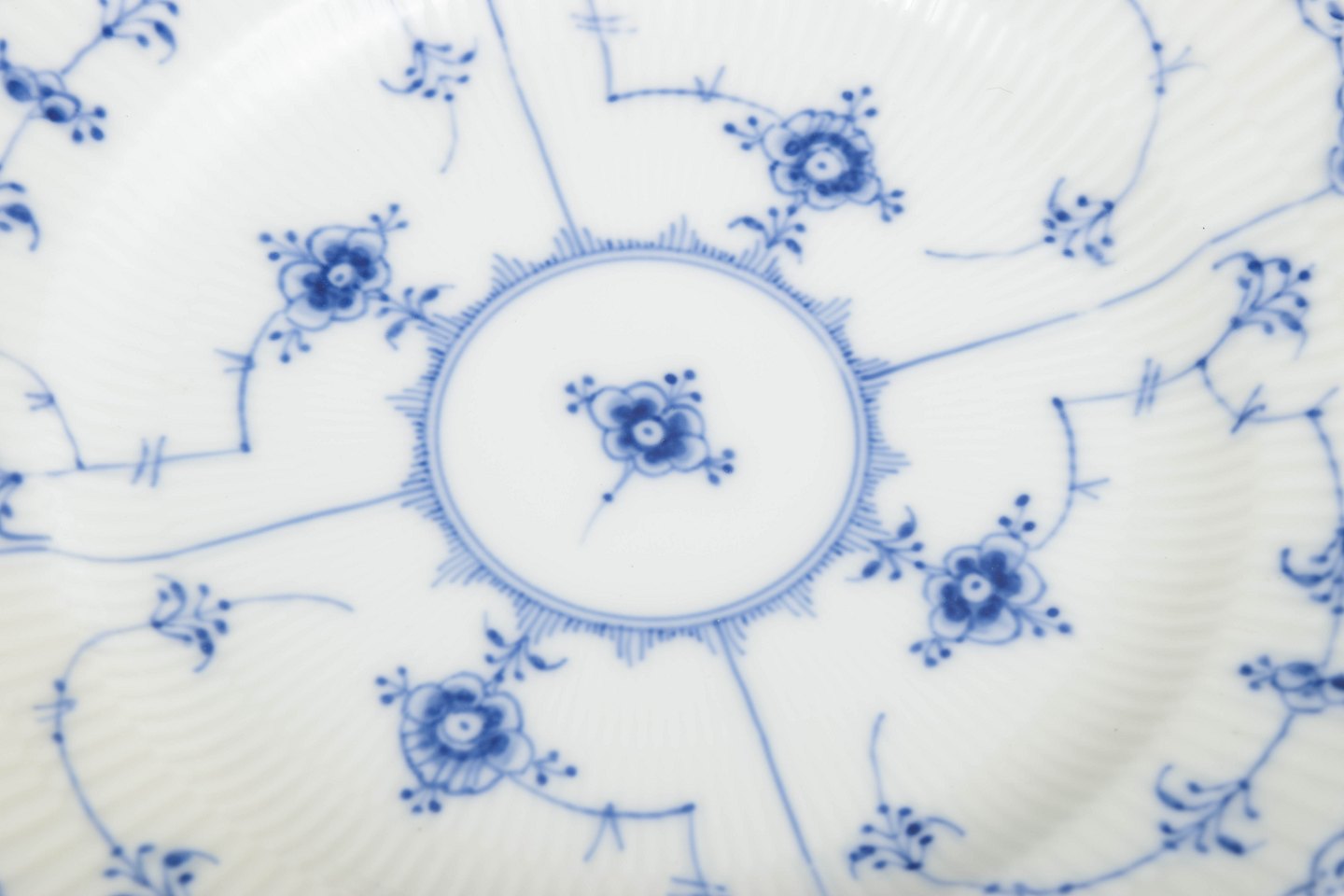 Royal Copenhagen blev grundlagt i 1775 i København under kongelig bevilling. Fabrikken er internationalt anerkendt for sit håndmalede porcelæn og sit høje kunstneriske niveau. Musselmalet Halvblonde er en variation af det klassiske Musselmalet stel og kombinerer riflede flader med en dekorativ blondekant, udført med stor håndværksmæssig præcision.