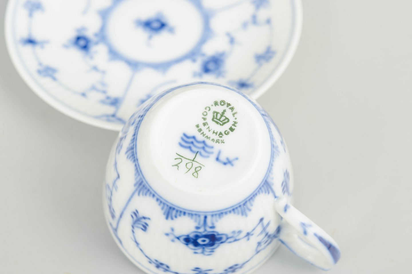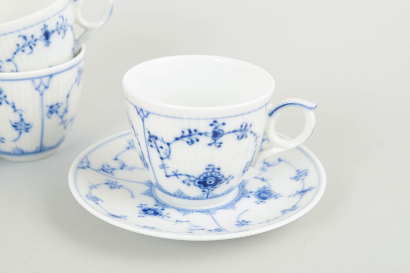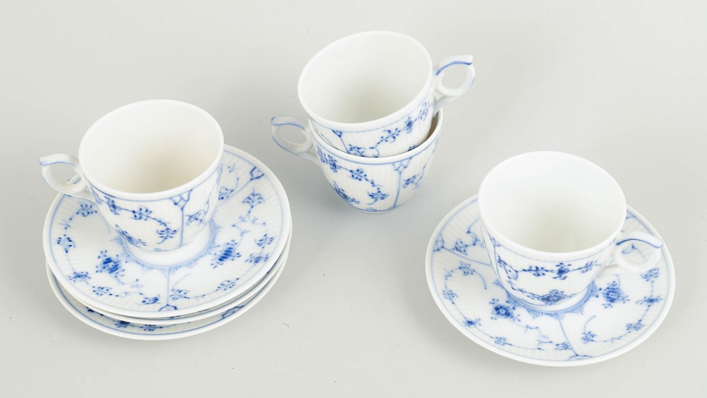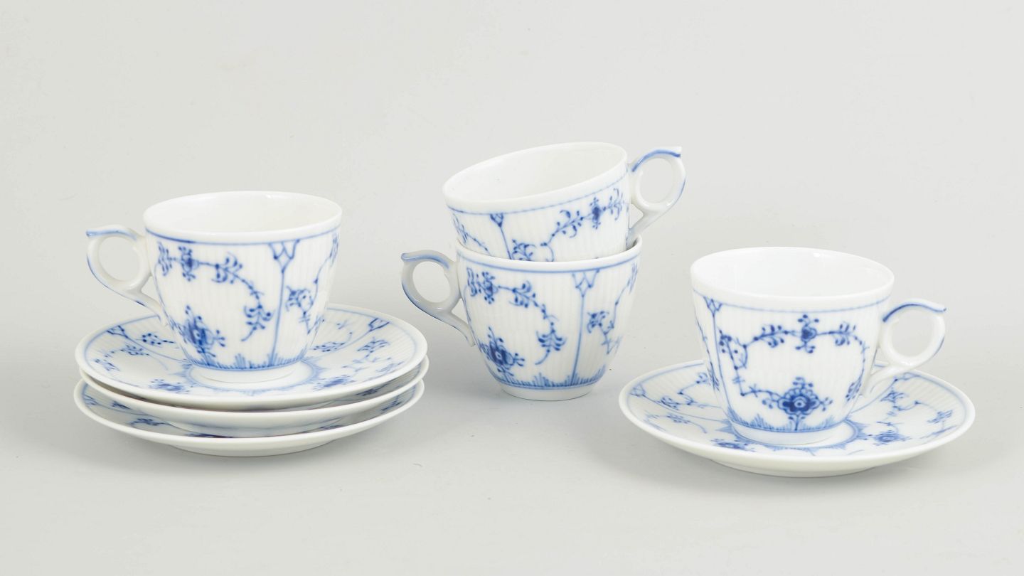 Text zugänglich auf Dänische: Royal Copenhagen Musselmalet Riflet, sæt på fire mokkakopper.