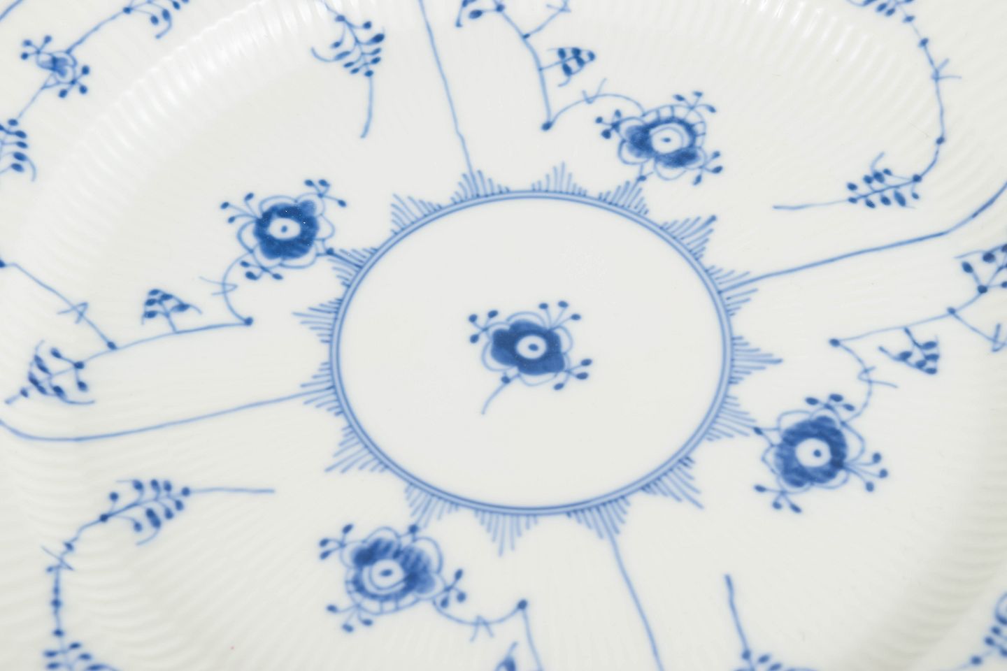 Royal Copenhagen blev grundlagt i 1775 i København under kongelig bevilling. Fabrikken er internationalt anerkendt for sit håndmalede porcelæn og sit høje kunstneriske niveau. Musselmalet Riflet er fabrikkens ældste stel, introduceret i 1775 og stadig produceret i dag, kendt for sin klassiske koboltblå dekoration og riflede form.